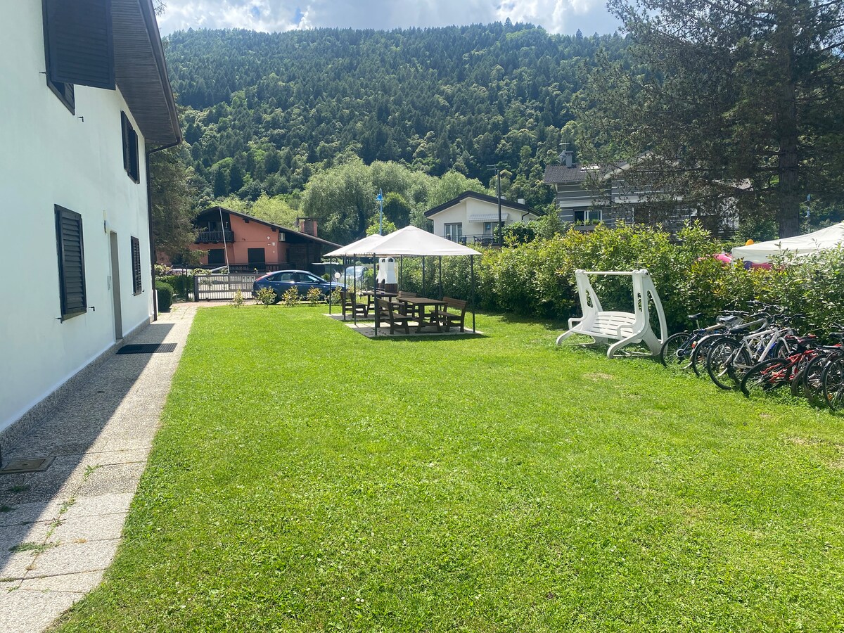 Mountain house at an altitude of 600 meters, surrounded by chestnut and beech trees. 6 km from Arco, near Lake Garda, ideal for a relaxing vacation and home working, for lovers of trekking, mountain biking, climbing and nature walks. Equipped with all the comforts of home, it has a large fenced garden (300 sqm), private parking and an outdoor relaxation area to spend evenings with friends. Pets are welcome. Satellite internet speed 200/250 mb/s.