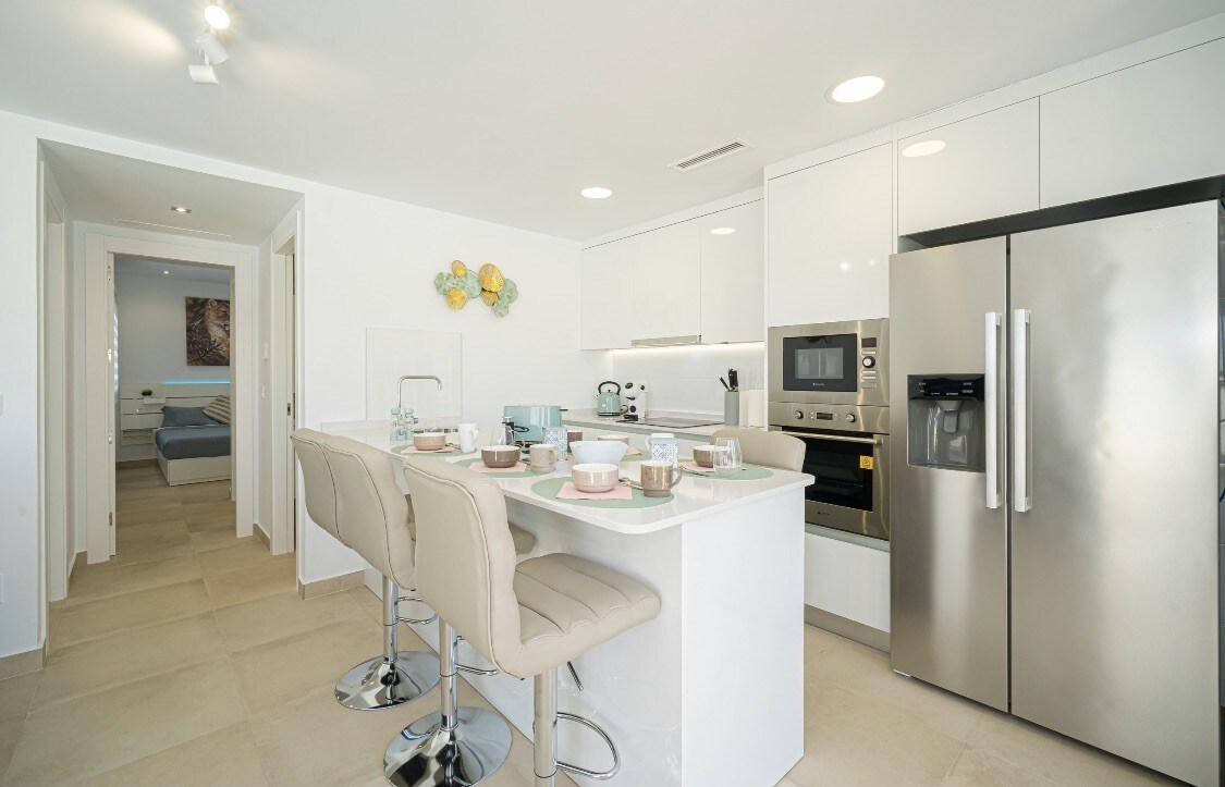 Welcome to this stunning 2-bedroom, 2-bathroom apartment. Designed for comfort and style, this newly built home offers uninterrupted sea views from every corner, whether you're relaxing in bed, cooking in the kitchen, or enjoying a drink on the terrace. -High-quality finishes & modern design -Spacious open-plan living area with floor-to-ceiling windows - Private balcony with direct sea views -Secure building with elevator and beach access just steps away. -Parking