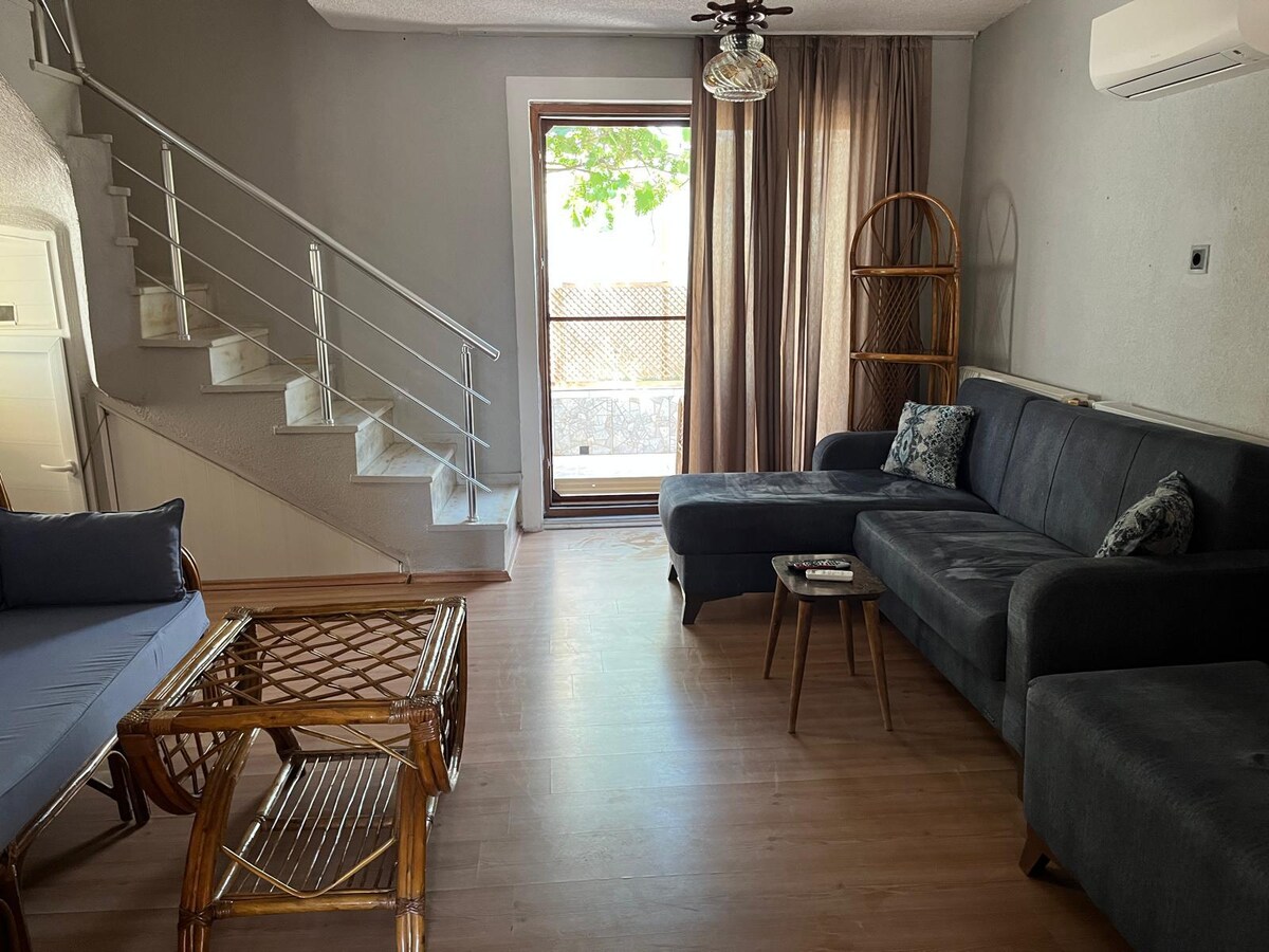 Our 1+1 apartment for rent with a garden and a large balcony with internet service in our village, which has the oldest history of the region and is identified with olive oil, located on the TROY culture route in Çanakkale Geyikli Bozköy, Our garden has an area for breakfast and relaxation All our kitchen utensils are available and ready for use. It is 3 km from the center of Geyikli and 5 km from the ferry pier (beach) in Bozca. Ideal for a peaceful North Aegean holiday with your family :)