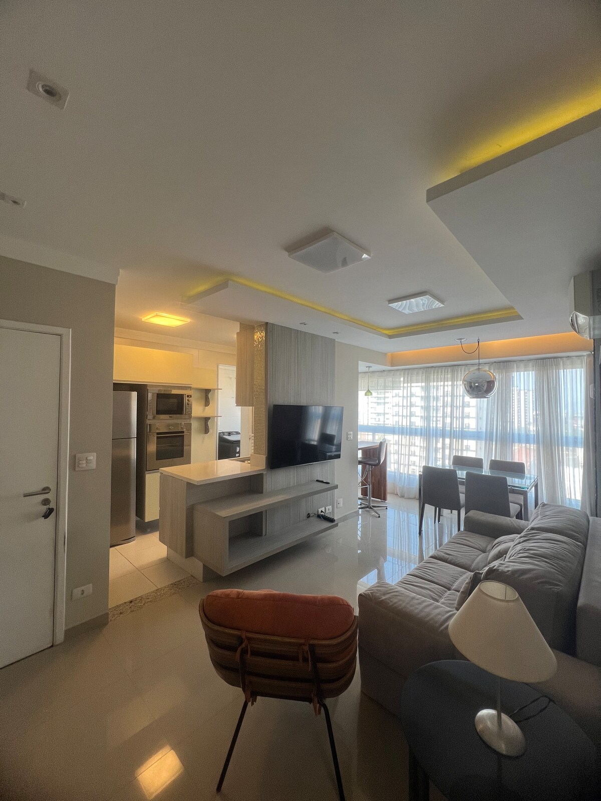 Modern 1-bedroom apartment and recently renovated on Avenida da Praia, near channel 4, with a side view of the sea and next to bakeries, markets, restaurants, bars and everything you need a few meters away. We are just a 10-minute walk from Shopping Praiamar and Praiamar Corporate, and in an excellent central location for those who need to get around Santos.