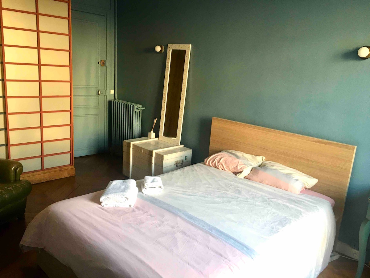 One Bedroom - with double bed - in a big Flat- Building Haussmann very bright / 4 rooms in the heart of Paris in the Marais. Private bathroom. This complex is located in the first part of the apartment and you can access it without bothering us giving you some freedom. Located on the 6th floor. Perfect exposure and great views of Paris. The apartment is located between Bastille, the village of Saint Paul, Saint Louis island, docks, the Place des Vosges. At the heart of the Marais, you are close to the famous Bastille-Richard Lenoir market, cafes and restaurants in the historic Paris. My husband and I will welcome you in our appartment (where we live) giving you tips in the area and Paris. Metro Bastille (line 1, 5 or 8) or Sully-Morland (line 7) equipment: -internet (WI-FI unlimited access) - Washing machine - Dryer - Dishwasher The price includes bed linen and towels, cleaning and french breakfast (tea or coffee, croissant and bread with butter and jam, fruit juice, cereal, yogurt). The minimum is three nights.