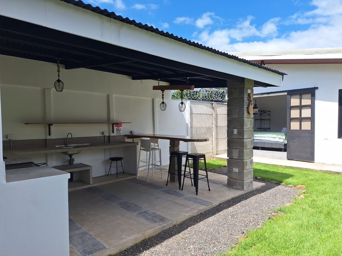 Acogedora casa de 2 habitaciones, a 4 min del centro de Liberia, a 3 min de Walmart y a 15 min del aeropuerto internacional Guanacaste y del Adventure Park, en auto. Wifi de 300 MB! La estancia es muy segura, ubicada en una calle sin salida, rodeada de árboles, podrás observar todo tipo de aves, ardillas, iguanas y hasta monos. Un lugar agradable, lleno de paz, pet friendly y a su vez muy céntrico. Ideal para turistas, familias pequeñas, nómadas digitales, amigos y trabajadores de paso.