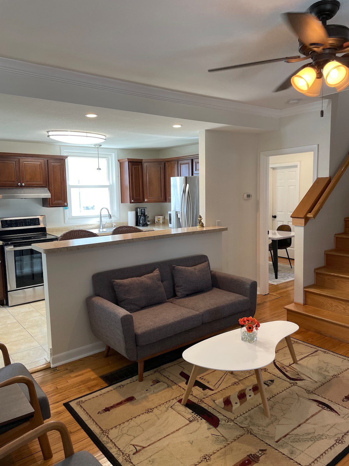 One level living/no stair. 2 bedrooms with 3 beds One-side of a duplex home: 1,200 Squarefeet w/ your own private entry, parking, laundry, kitchen.. 2.5 miles to Mayo, Target, Hyvee, gas stations...Fully furnished home. Smart TV & Fridge w/ Superfast internet & NetFlix included. Easy self-check-in keypad. A few blocks to the bus stop. Modern/spacious interior. Fully equipped kitchen w/ dishwasher, pots, pans, and washer/dryer at no additional cost. Fireplace & private deck. 3 parking spaces