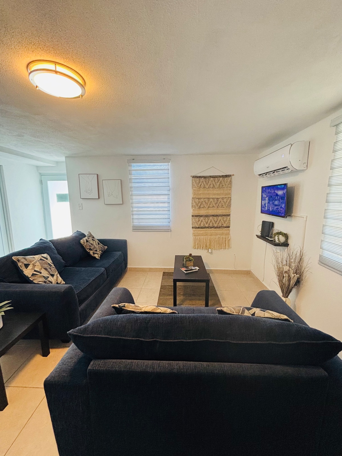 This Airbnb is cozy and warm, with wooden furniture and soft textiles that invite you to relax. The decor is inspiring, with unique details, local artwork, and plants that create a creative atmosphere. The space is relaxing, with a terrace surrounded by a spectacular view of the east coast of PR ideal for families, with a functional kitchen and play areas that make everyone feel at home. In addition, the neighborhood is safe, ensuring a quiet and comfortable stay.