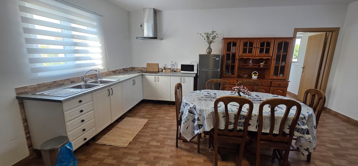 ArotasHome is in a peaceful village, 3km away from city center and Industrial Zone. A spacious home with plenty of indoor and outdoor space, numerous bedrooms, a large kitchen, vibrant colors, and plenty of light. A vacation home for your entire family and friends! A place of rest for your company's employees! Living room with cable TV and sofas, a dining table for 10, fireplace, barbecue grill, Wifi, office space, and a fully equipped kitchen. Parking is available outside and inside.