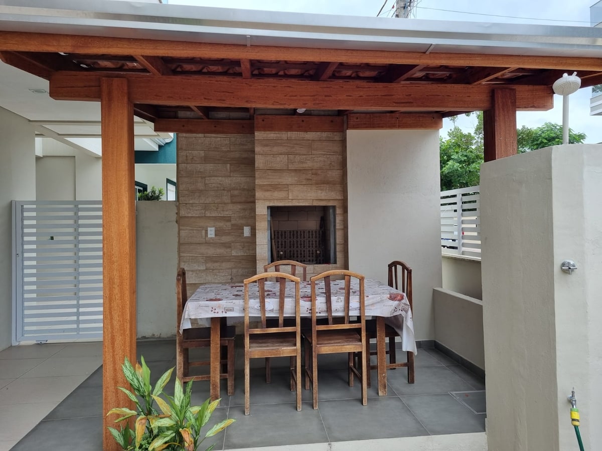 Spacious and beautiful house 1 minute from the sea walking! Perfect location for people seeking safety and tranquility. We are in the center of Canto Grande, about 150 meters from the entrance to Morro do Macaco, the square, and a playground for children. You can do everything on foot: pharmacy, markets, restaurants… Fully equipped house, all rooms with AC, cistern, avoiding water problems that affect several residences. Smart TV, electronic gate and 100mb fiber Wi-Fi Come and visit our spectacular little corner!