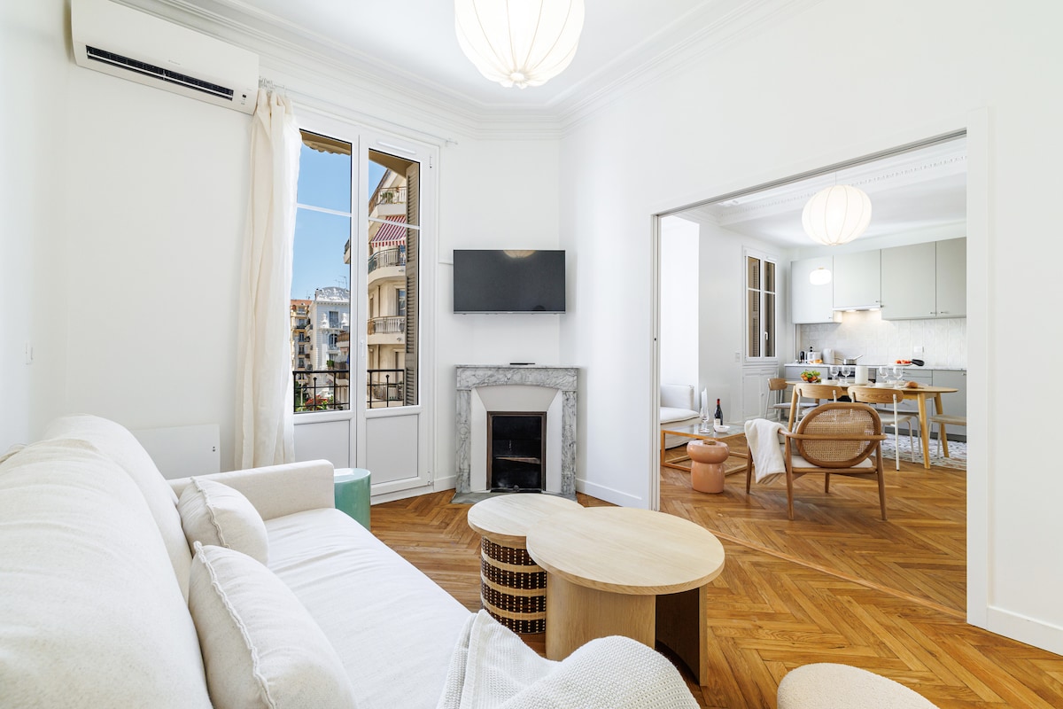 Perched on the top floor without elevator, the apartment boasts breathtaking views of the magnificent church towers of the Old Town and the azure waters of the sea at the back, allowing guests to immerse in the beauty of Nice. Here, you are just a 5-minute walk away from the beaches, allowing you to enjoy the sun-soaked shores of Nice and the Promenade des Anglais. Explore the enchanting streets of Old Nice, discover its rich culinary scene, and fall in love with its quaint and romantic charm.
