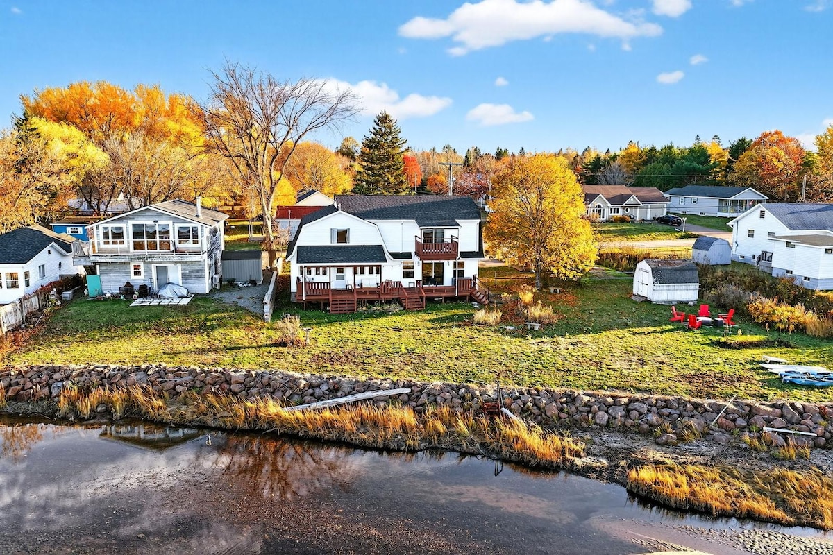 This brand new waterfront listing offers all the modern amenities and breathtaking views that will make your next getaway the most memorable yet! Our charming waterfront property is uniquely located on a beautiful peninsula along the Foxriver with hundreds of feet of waterfront access Relax and gaze at the stunning views, Enjoy our firepit, seasonal BBQ and the water front wildlife! Bad weather? No worries! We have high speed internet, Netflix, Washer&Dryer and your own personal Hot tub!!