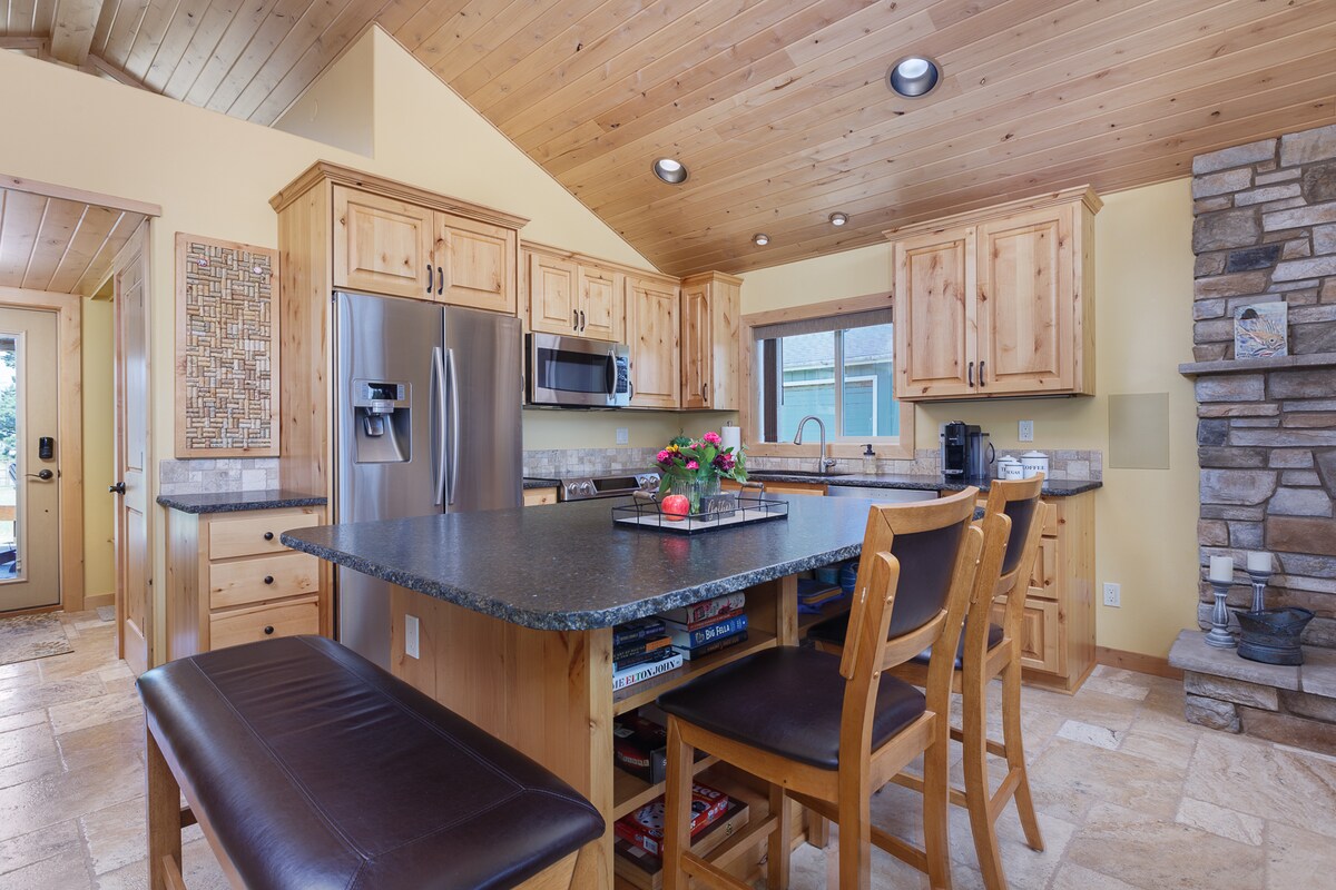 The Coho Cottage is luxurious yet surprisingly spacious with hot tub. You'll love the high end finishes and thoughtful accommodations. The 2 bed (1 queen and 1 full), 2 bath home sleeps 4. Almost every square inch is accounted for. This amazing location is just a 5 minute walk to the beach the locals call the "turn around". Convenient public boat launch is just a 3 minute walk which is great for kayaks and SUPs. The Pelican Pub is about a 15 minute walk. You cannot beat this location!