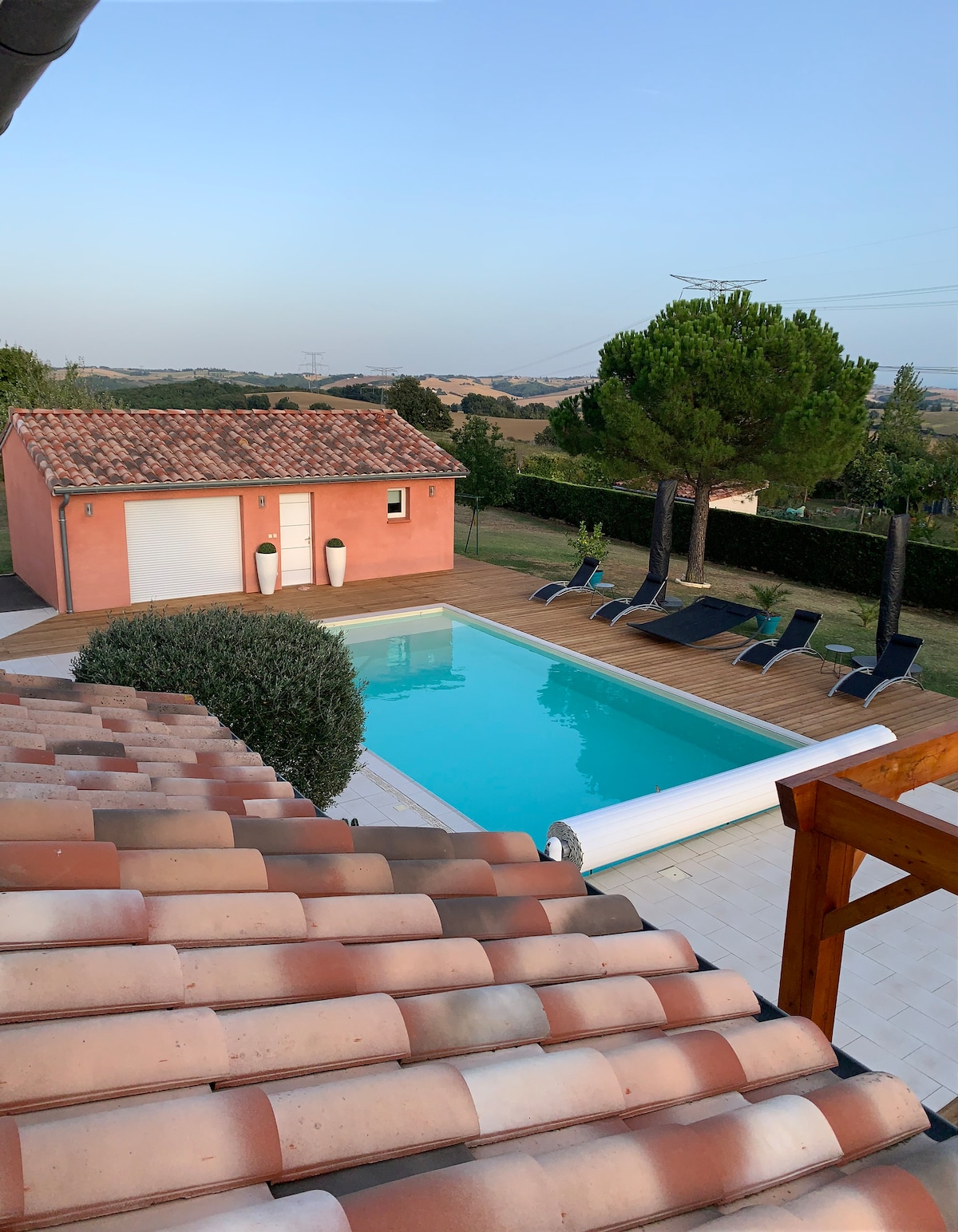 Equipped with air conditioning and mosquito nets on each window, this small independent accommodation offers stunning views of the Pyrenean range. Located next to our house facing the pool, a large awning will allow you to rest in the shade on a deckchair. Large private parking space closed by gate. Wake board 2 km away, on the banks of the Garonne in the commune, ideal site for fishing, hiking and close to tourist sites, e.g. Carcassonne