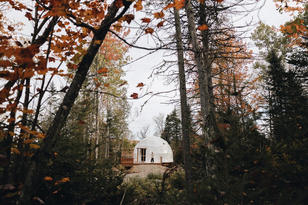 This dome overlooking the mountains is located on the banks of the Jacques-Cartier River. 30 minutes from the city, a few minutes from many resort attractions, you can discover the city and enjoy the outdoors, in the same day! A visit to Village Vacances Valcartier, a rafting trip or a walk in Old Quebec, your days will be filled!