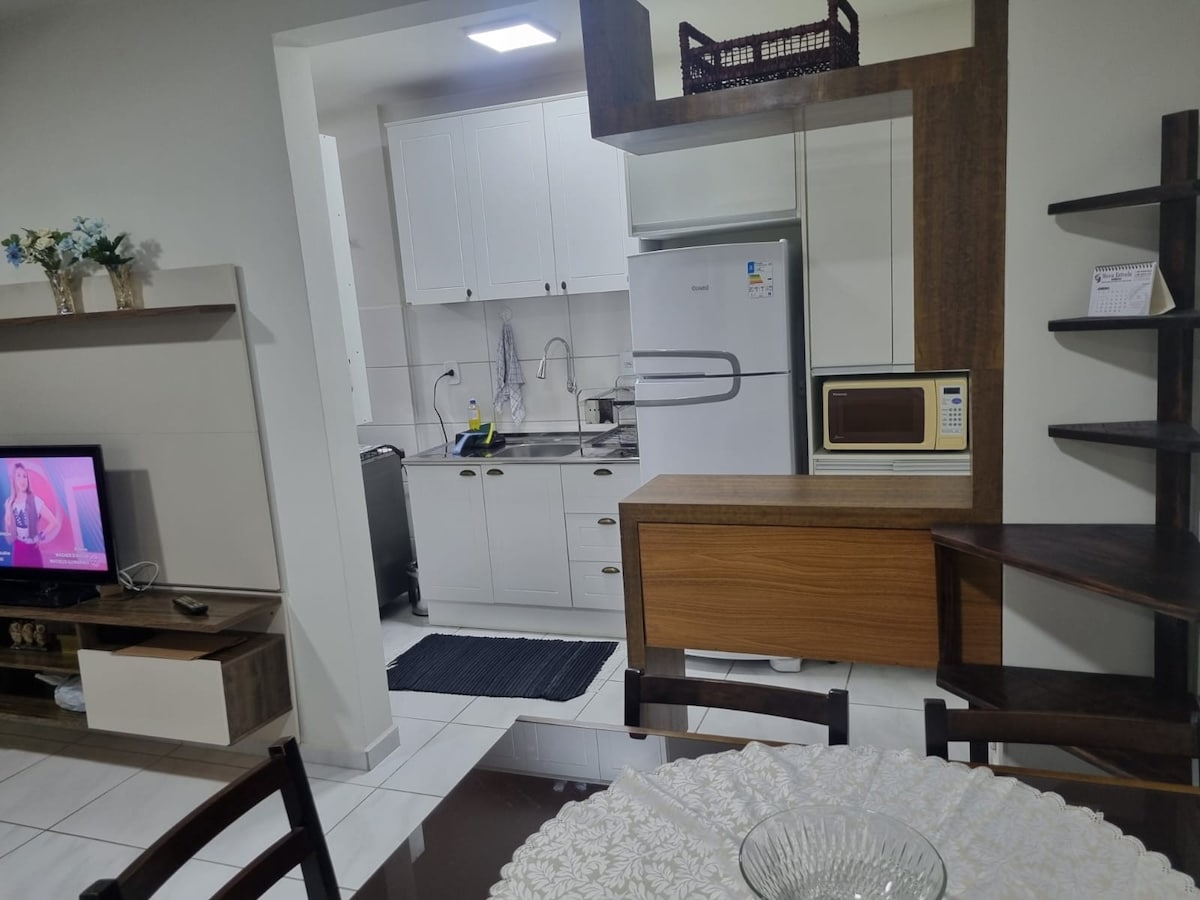 Ideal for you and your family seeking tranquility, warmth and practicality, up to 7 people!! 2 km Farol Shop and Arena MultiUso 3.5 km Neuroreab 5.5 km Unisul 3 km from Hospital 1.7 km Socimed 3.2 km to Parque Encantos do Sul Near the bridge that connects Tubarão to Capivari Balcony with barbecue and landscape view, smart TV, washing machine, oven, gas stove, full kitchen, bed linen, towels, air conditioning, appliances. Tourist beaches 30 min away, hot springs 10 min away. We accept pets!