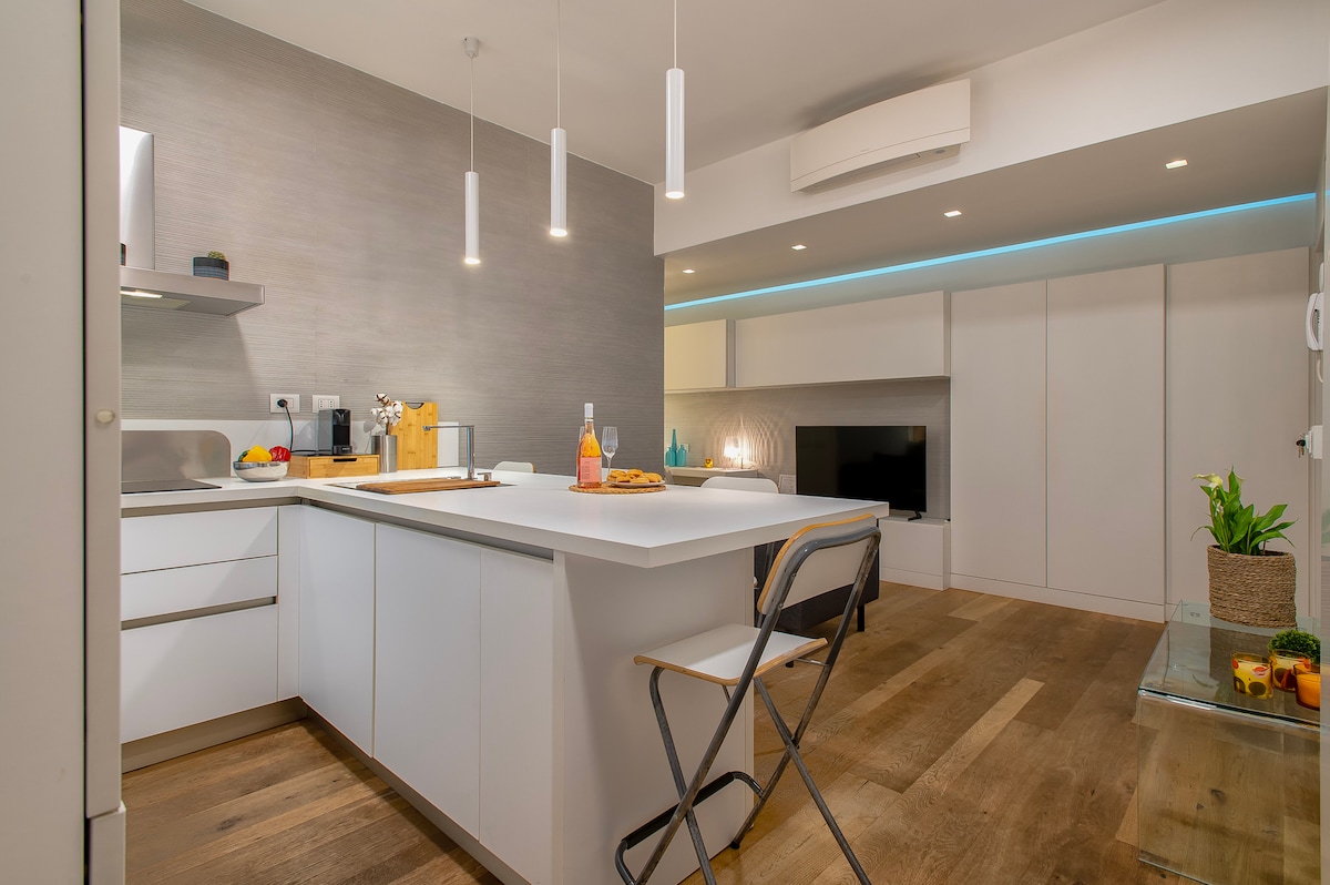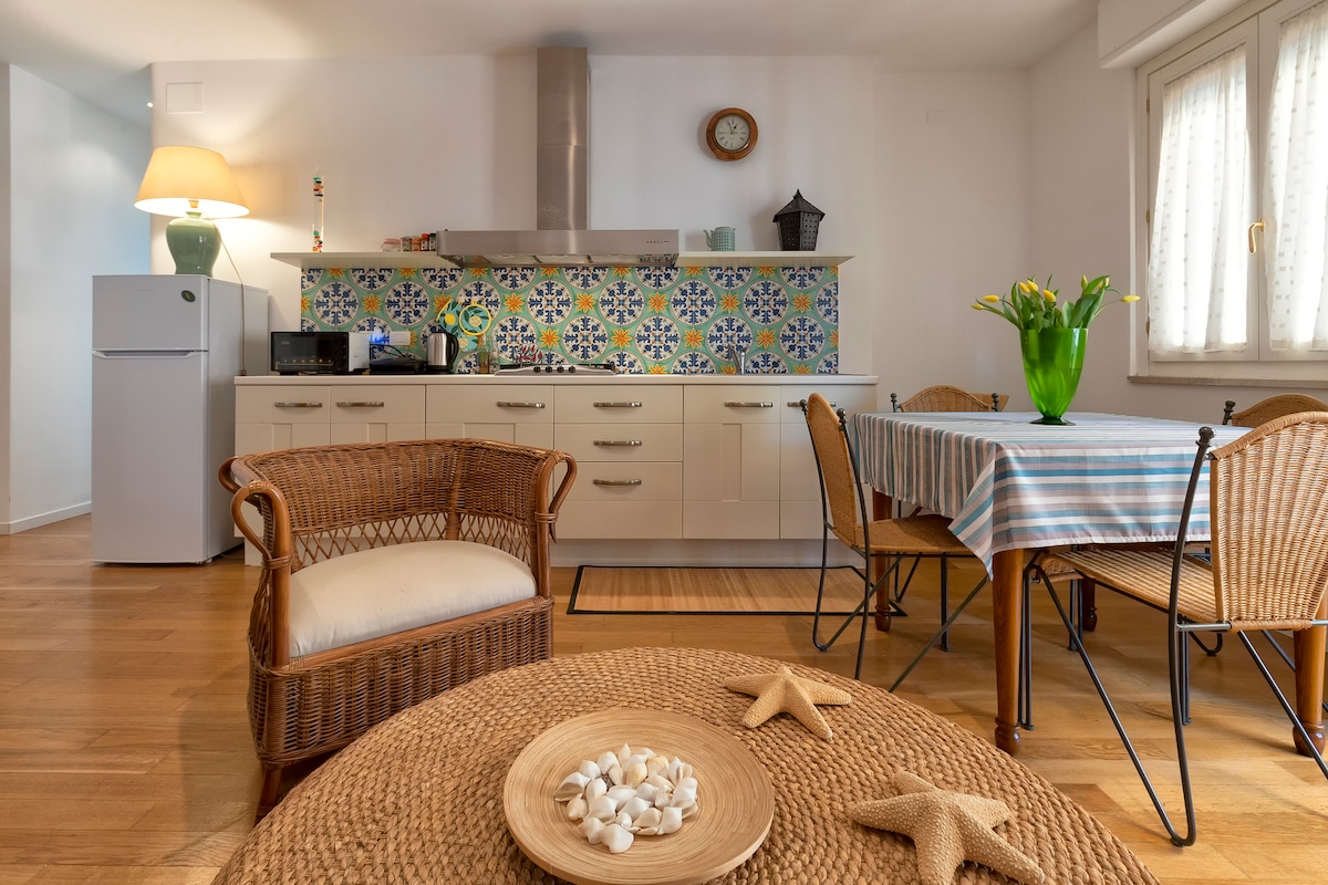 New apartment 300 meters from the sea, bright, colorful and quiet. Ideal for families and friends, 2 large bedrooms. Air conditioning in every room, wifi, 3 LED TVs. Hi-fi stereo, dishwasher, washing machine. Furnished with care and details by wood artists and visionary decorators. Everything is comfortable, even the free parking under the house. A 10-minute walk from the center and the port of Alghero. IDEAL