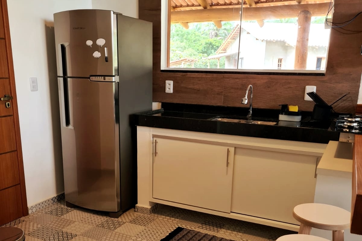 Welcome to Oliva Chalet, a newly assembled space perfect for those seeking simplicity, comfort and tranquility. Located next to the forest, in the Mar Doce de Abrolhos condominium, an exclusive waterfront retreat. It offers peace and access to the sea arm, one of the beauties of Caravelas. Ideal for one person or a couple, it has a double bed, air conditioning, Wi-Fi, TV, equipped kitchen, desk. Next to the Kitongo reserve and boat operators for Abrolhos. Come relax!