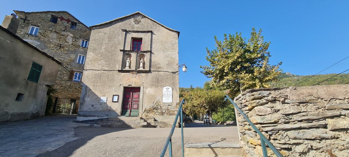 Corsican-style house for nature lovers. Located in the heart of Castagniccia in the small village of Carchetu, 10 minutes from the waterfall in Struccia and many shaded walks on hiking trails from the village. For the more athletic, a trail station is located 1 km from the accommodation. To eat, the pizzeria restaurant "Chez Armand" is 25 m from the accommodation. For your groceries, a Proxi with bread is 5 km from the village in the municipality of Piedicroce.