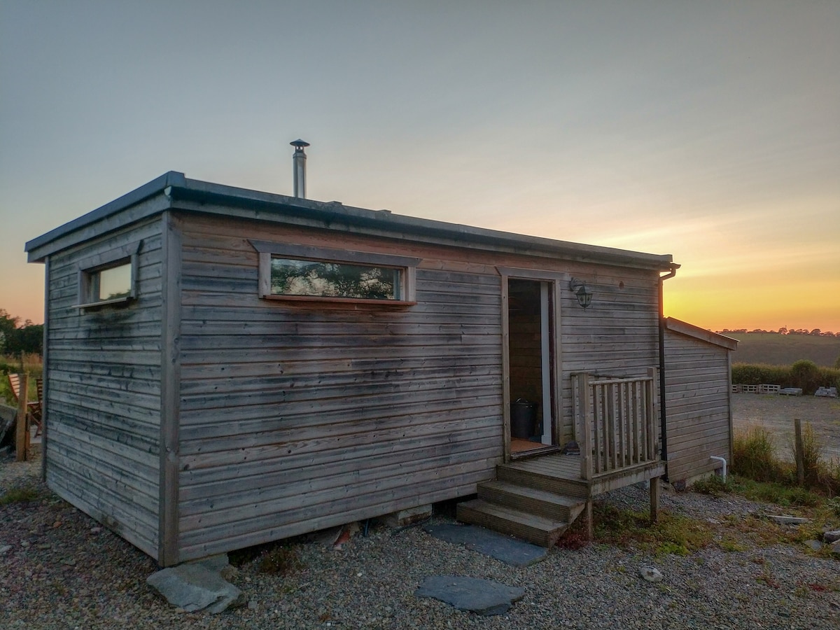 Situated on a quiet road in between the sea side town of New Quay and Llanarth, our cabin is close enough to be by the sea in 5 minutes but without the crowds. The Cabin is situated at the end of our drive, with it's own parking area and a small private garden offering a sea view and is the perfect place to watch a beautiful sunset in peace and quiet. Inside, the cabin offers a living space perfect for a couples retreat to get away and unwind.