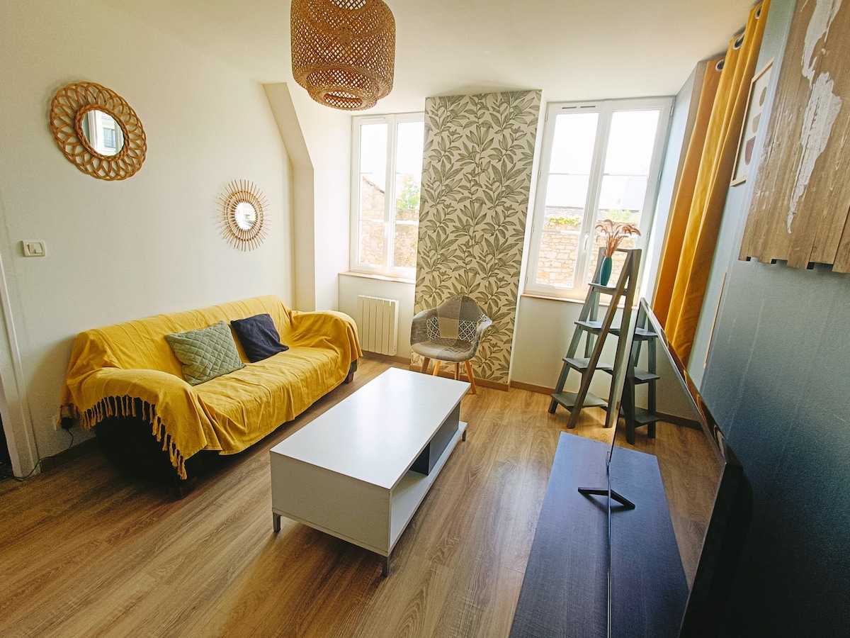 Atypical apartment classified 2⭐, 41 m² renovated with love 💕 on the 2nd floor, 2 steps from downtown Carentan, shops & train station nearby 🚶♀️🚉. Perfect for discovering the landing beaches🏖️, Cotentin 🌿 and Mont-Saint-Michel 1.5 hours away. Ideal for 2, possible up to 4 with sofa bed🛋️. Relaxing setting guaranteed😌✨. Contact us 📩, quick response guaranteed! 😊