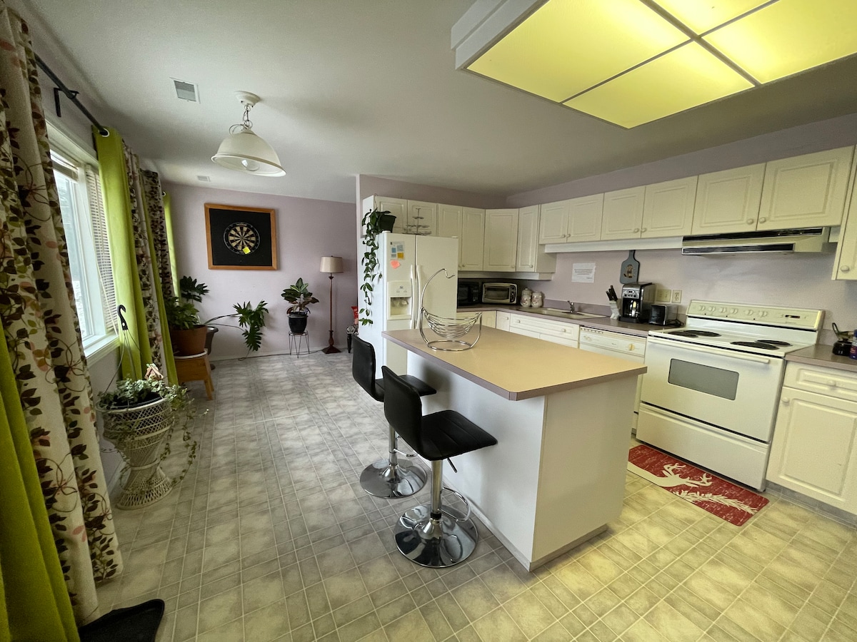 For group or a family get away,we offer 3 bedroom self-contained basement suite with ground floor private entrance (Bedroom#1 Queen, #2 Queen and a futon(double)# 3 is corner secluded room-no door but with curtains for privacy with queen bed). Feel at home in our spacious basement suite that has most of what you need.Please check my other listings if you need private rooms only. Hosts live one level up so you know your needs will be taken care of. Calendar may look available, please message