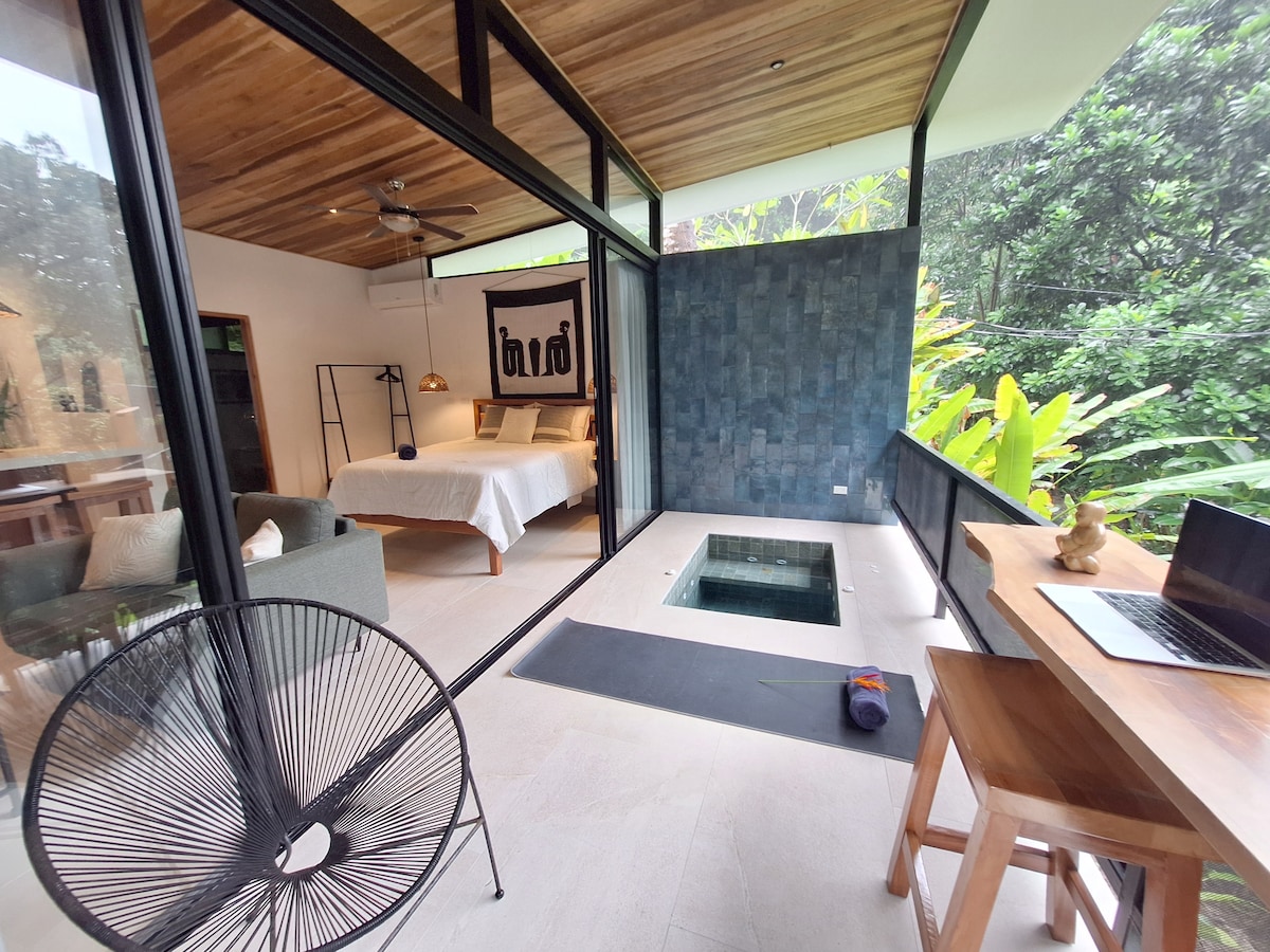MODERN LUXURY STYLE STUDIO UNIT/VILLA IN SANTA TERESA🌴🏄 Seek luxury & comfort in this fully equipped private studio unit/villa immersed the jungle a short stroll away from Santa Teresa’s surf, food & nightlife scene. 💦Hangout or relax in the common lounge with pool 🏝️2 minute walk to the beach 🍽️Fresh meals in the outdoor kitchen 🚗Gated & private assigned parking space 📍Central and calm location 💪Supportive & passionate staff Book your memorable experience today! ☀️