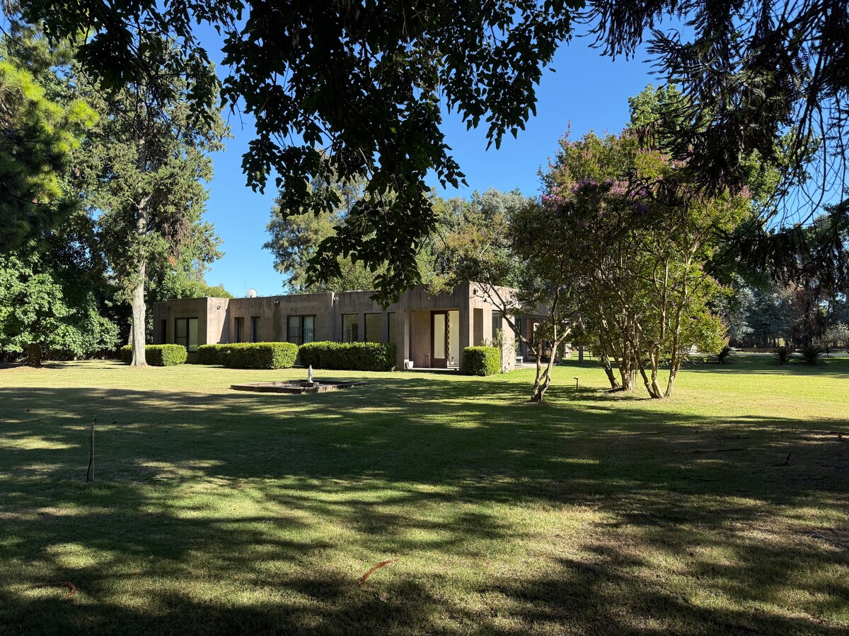 Experience country life just 100 km from Buenos Aires and relax with your family in a quiet and natural setting. Located just 20 minutes from downtown Mercedes, our house is ideal for a weekend or for weekly and biweekly rentals, disconnecting from the noise of the city but without going too far. Enjoy the experience of waking up in the countryside surrounded by trees and grass to spend some incredible days, with no other worry than if the barbecue is ready!