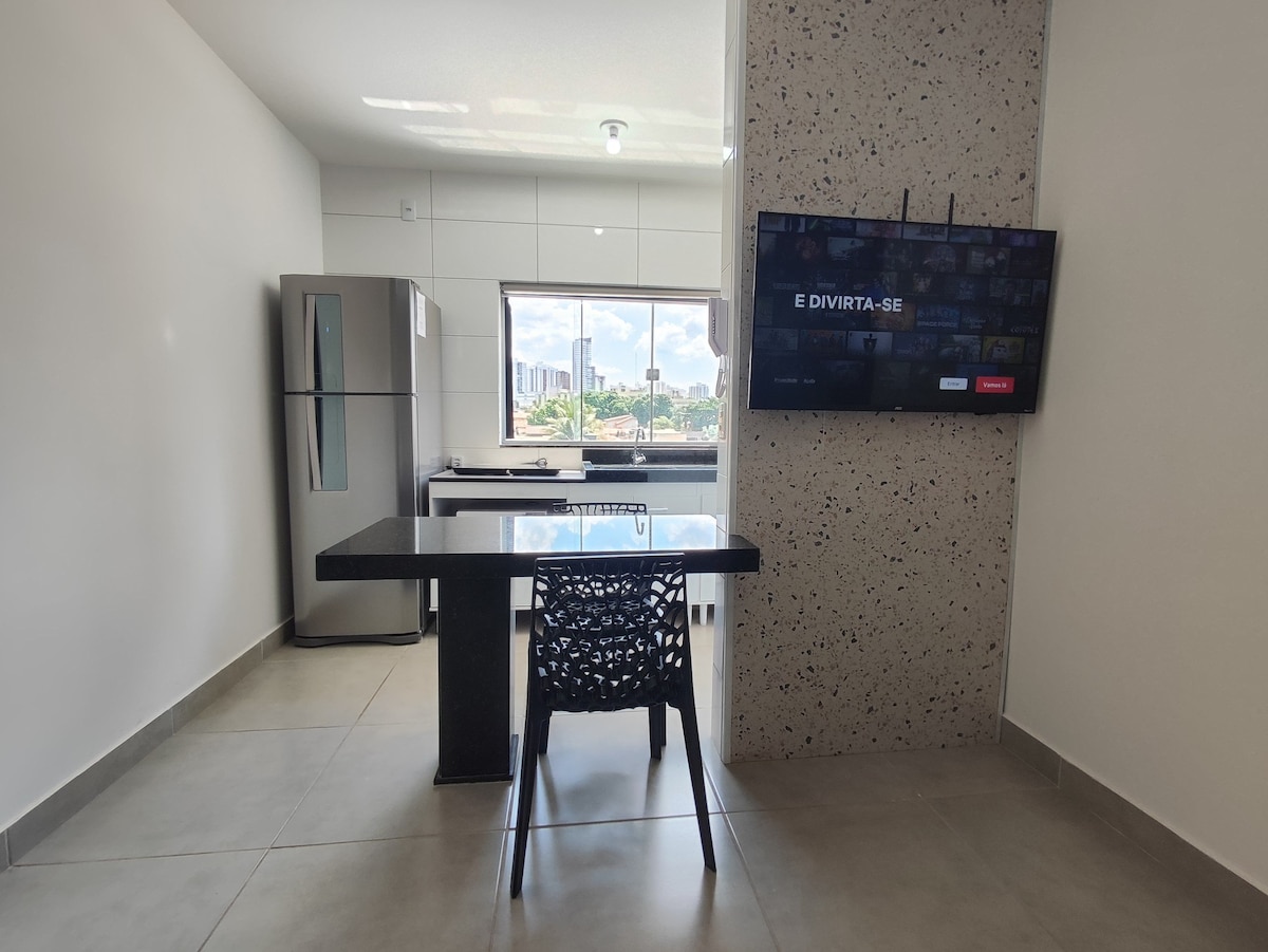 Super comfortable flat, in the best location in Goiânia, near Areião Park. Everything you need for a comfortable stay, such as a kitchen with various utensils, workspace, bedroom with split air-conditioning, Smart TV with Samsung plus and Wi-Fi internet. Close to bars, restaurants, shops in general. 24-hour concierge and parking space. Note: 1 small pet accepted * request more information 🐶 For a third person, request information Serra Dourada 4 km