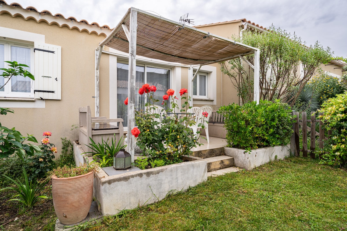 Maison mitoyenne de 40 m² pour 4 pers située à Carpentras, ville du Comtat Venaissin terre des festivals (Carpentras, Avignon, Orange, Vaison la Romaine,Aix en Provence) Proche du Mt Ventoux, paradis des marcheurs et cyclistes, des dentelles de Montmirail, de l’Isle sur la Sorgue, Fontaine de Vaucluse et du centre aquatique Wave Island et du parc Spirou à Monteux. Baignades au lac de Monteux et Mormoiron (accrobranches) 4 golfs à proximité : Avignon, Saumane, Morières et Orange (9 trous)