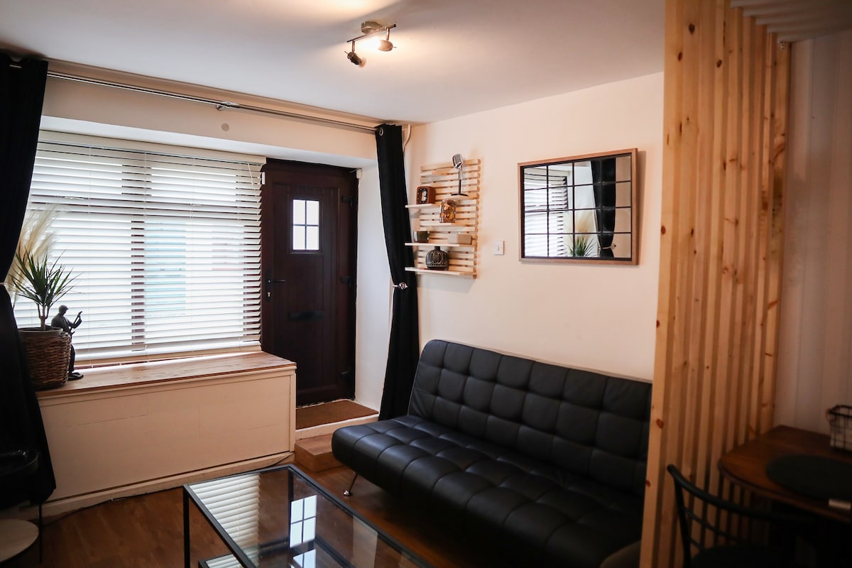 The Cowshed Cottage is a lovingly restored Milking parlour with one bedroom, a bathroom & large living area with fully equipped galley kitchen, wifi, sofa that converts to a large double bed, underfloor heating & air con. It retains some of its original features while having every modern convenience. It's little front garden is perfect for your morning coffee. A Stones throw from the Greenway, minutes from a beautiful beach, Mountains views. Our little bit of Bliss we love to share with others.