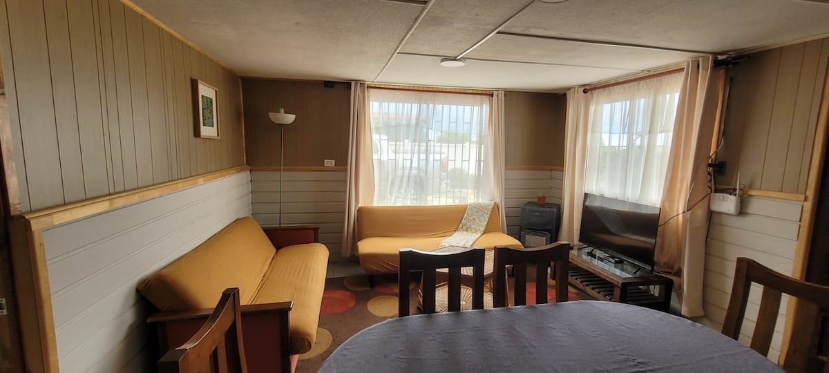 Fully equipped cabin with a terrace overlooking the sea, fully equipped, cable TV, gazebo, parking, double bed and futon, ideal for 2 people. A 10-minute drive to beaches and 5 minutes to the casino, downtown San Antonio, and the port's cruise ship embarkation point. The cabin is located in an environment of nature, tranquility and security ideal for rest on the coast of poets near museums. For pets $15,000