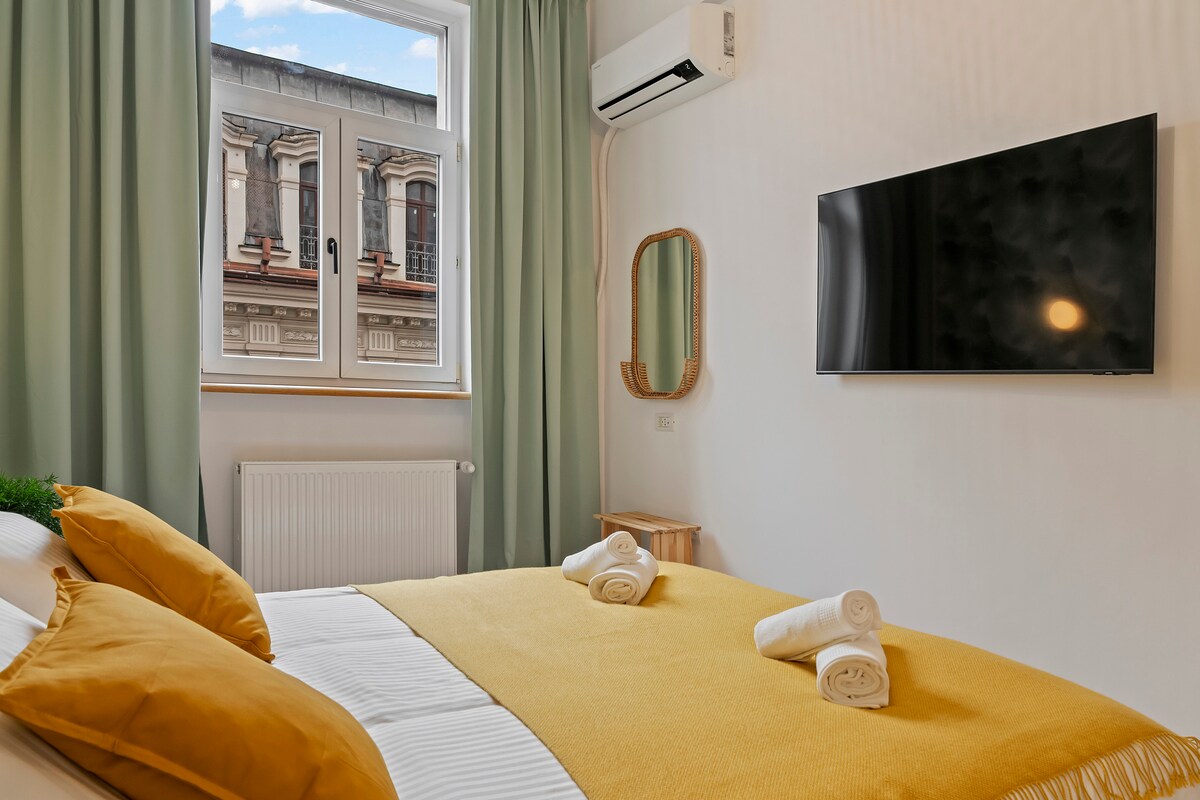 Stunning apartment with charm and character located in the heart of the Old Town. The space was completely renovated in September 2017 and will be the ideal place for you to start discovering Bucharest. Being just across the National Bank of Romania, the area couldn't be safer. You will enjoy a fully equipped kitchen, an amazingly comfortable living room and a cozy bedroom. We provide a lightning speed wi-fi connection as well as cable TV.
