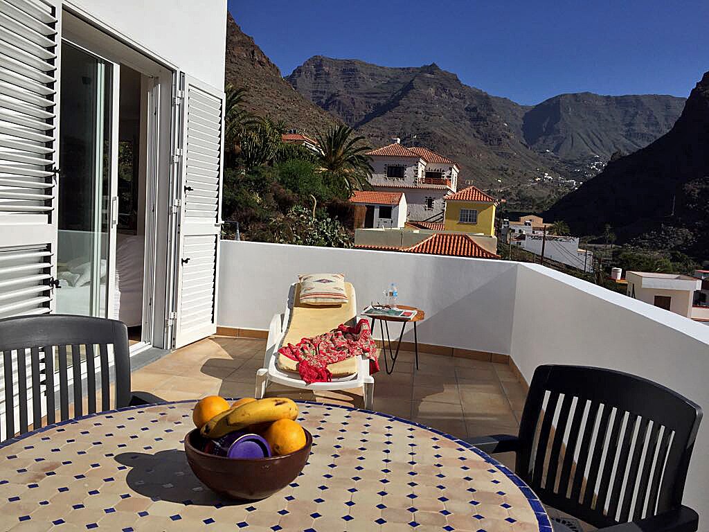 Das Apartment Casa Lua liegt im idyllischen Ortsteil Piedras Quebradas, etwas unterhalb von El Guro und knapp 2 Kilometer von den Stränden des Valle Gran Rey entfernt. Von der bepflanzten Terrasse aus haben Sie einen wunderschönen Blick auf das beeindruckende Bergpanorama des oberen Tals – der ideale Ort zum Entspannen und Verweilen!