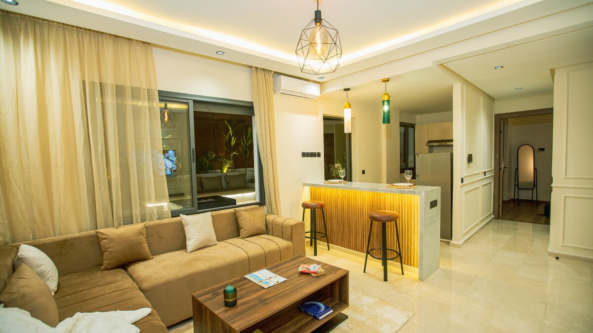 Discover luxury in the Princesses district of Casablanca. Our chic apartment combines modern amenities and elegant décor for a memorable stay. With a great location: close to the 🏟 Mohamed V Stadium and Casablanca Finance City. the apartment is surrounded by large shopping malls, high-end shops, gourmet restaurants and supermarkets. The apartment contains high-end furnishings and essential and modern amenities.