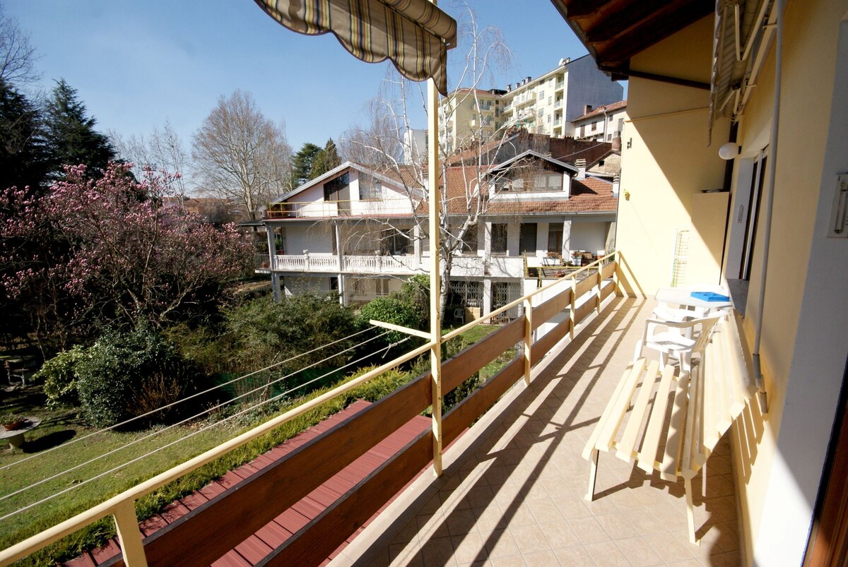 Stay in a comfortable and quiet place in Ivrea, San Giovanni district. The accommodation is on the second floor of a three-story building, facing a large garden and wooded area. It has a large living room with dining area, a kitchen, two bathrooms, and two bedrooms. It also has a small balcony, which is in bloom in the summer. Ten minutes from Ivrea and lakes, there is a bus stop, food and take-out pizzeria bar downstairs.