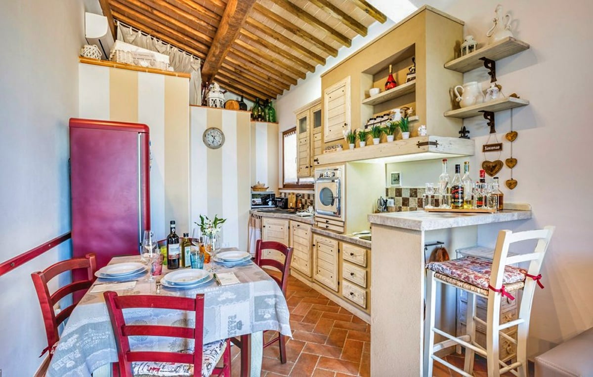 Piccolo e confortevole appartamento per 2 persone arredato in stile toscano e con travi a vista,immerso tra le dolci colline della campagna toscana. A disposizione degli ospiti spazio esterno con tavolo,piscina condivisa,forno a legna e barbecue,piccola lavanderia,wi-fi. L'appartamento è stato ricavato da una graziosa casa colonica in pietra del 1800 recentemente ristrutturata secondo la tradizione toscana e suddivisa in tre comodi appartamenti.