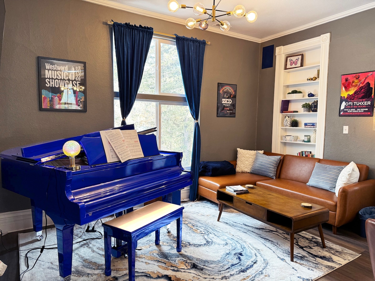 The hills are alive with the sound of music in Cascade, CO! Welcome to Rhapsody in Blue! Just like George Gershwin's quintessential masterpiece; Rhapsody in Blue, challenged contemporary notions by blending classical and popular music, Our Rhapsody in Blue seeks to do the same by blending classic architecture and modern aesthetics into a beautiful symphony of color, contrast, movement and sound. You must see it, and hear it, to believe it. We eagerly await your arrival at Rhapsody in Blue.