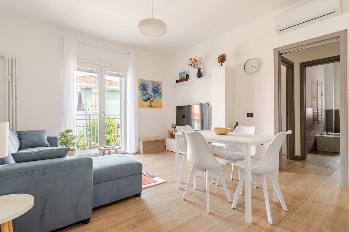 Discover your new haven in Novara! This new, fully furnished two-room apartment is perfect for up to 4 people, offering all the comfort you need for an unforgettable stay. Large living room with sofa, TV and dining table, ideal for relaxing. Fully equipped kitchen with oven, hob, fridge and dishwasher. A modern bathroom with shower and washing machine. Private balcony, perfect for enjoying a morning coffee or an aperitif in the evening.