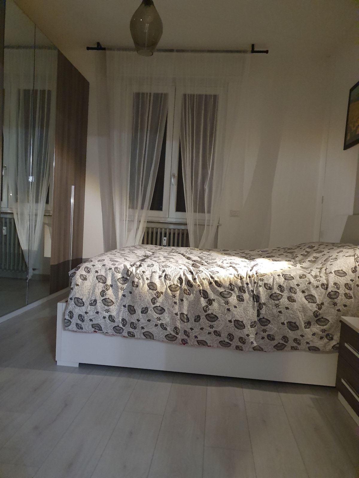 This apartment is on the 6th floor. It is bright, has a terrace, and is equipped with lighting. The Baggio area is conveniently located near San Siro and Fiera. All rooms have windows with exits to the terrace, electric shutters, and an armored front door. Nearby: Supermarkets, restaurants, trattorias and all basic services. It has air conditioning, independent heating, a TV, and a washer/dryer. Free parking in a garage for small and medium cars and on the street.