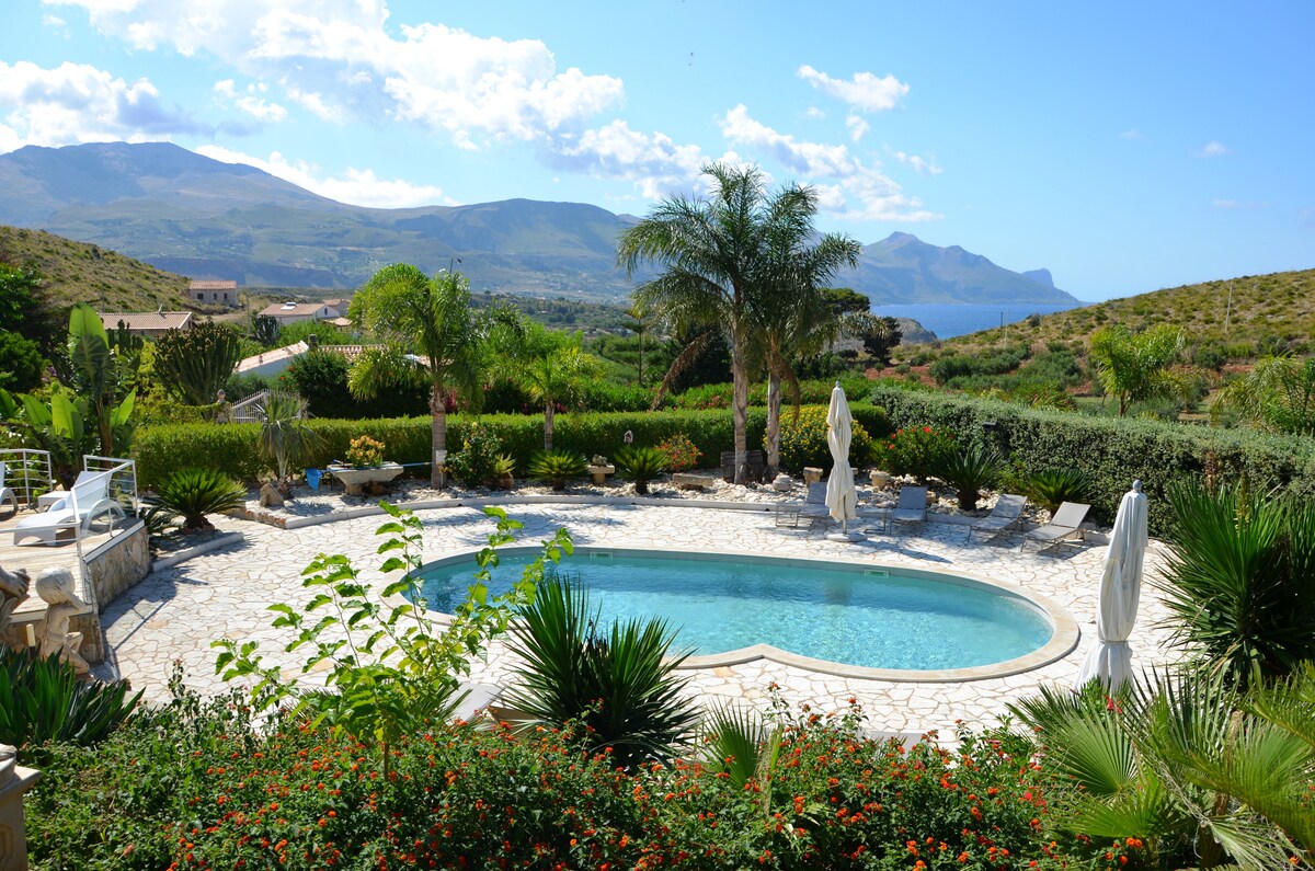 Villa Leukè: swimming pool, view of the Faraglioni di Scopello