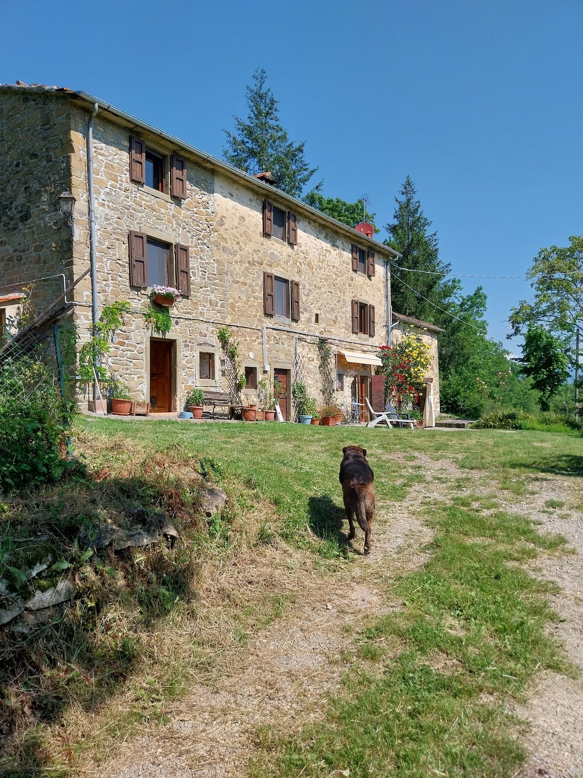 Independent studio in a former wine cellar of a traditional Tuscan house from 1862, surrounded by beautiful forest and nature. Includes a bathroom and kitchenette, plus one extra sofa bed. Pets and children welcome. Please note: The 1 km access road is unpaved and uphill—generally fine for most cars in good weather, but particularly low cars may have difficulty. Local stay tax: €2 per person per night, paid upon arrival.