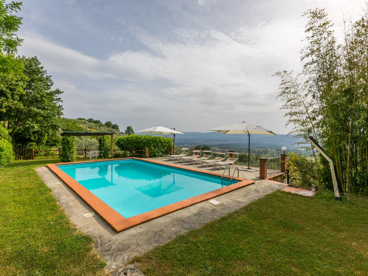 Completamente ristrutturata posizione con vista mozzafiato sul Valdarno. Il piano terra è composto da soggiorno con due vetrate che danno sul patio, camino, divano letto, bagno con grande doccia e cucina moderna con isola in acciaio, con tre porte finestre per accedere alla zona pranzo esterna con bbq. Il primo piano è composto da due camere matrimoniali ognuna dotata del proprio bagno con doccia. Giardino è moto curato,ci sono vari angoli relax, prendisole è una piscina infinity ad idrolisi