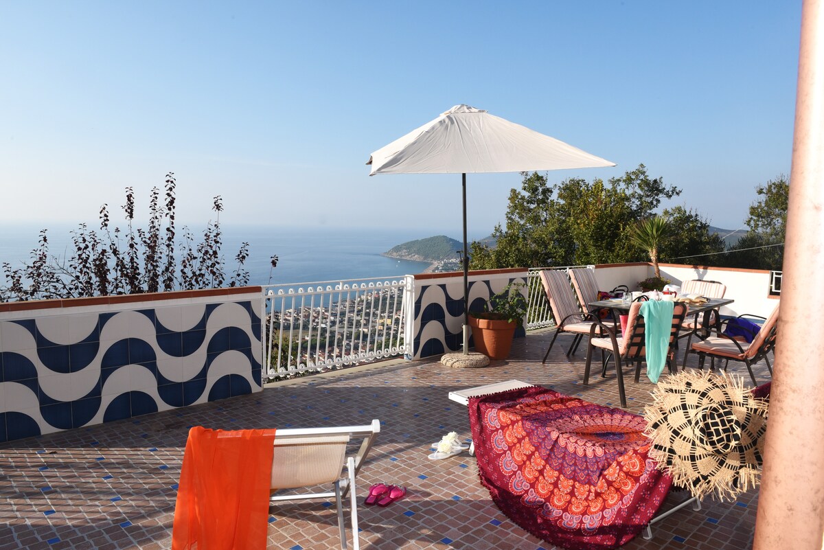 Large villa (340sqm) in a private park with panoramic sea views, dedicated to those who love natural and quiet environments. Surrounded by the green of the hill, the blue of the sky and the blue of the sea. The decor is simple and functional. Due to its size, the house is ideal for accommodating large families or groups of friends. The large plot of land that extends over the hills, the beautiful garden with swimming pool, sun terrace and balcony overlooking the sea, are the strengths of the house.