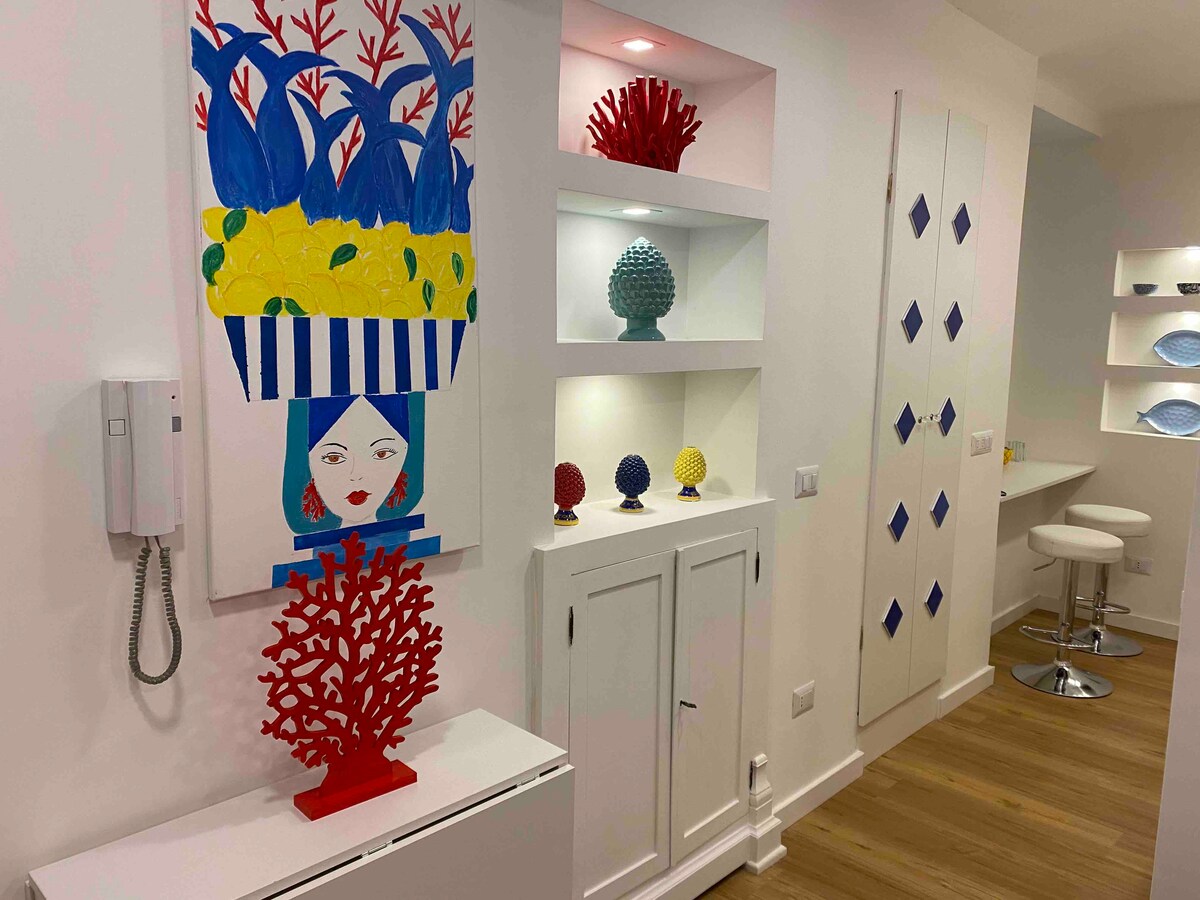 A home resting on the mountain, overlooking the sea. In the heart of the untouched nature of the Lattari Mountains Park, Verdeazzurro stands: rationality of spaces, welcoming design, enveloping colors. The apartment consists of a large living room with kitchen, two bedrooms overlooking the gulf and Vesuvius and bathroom. Each room has its own warm and relaxing tone, in harmony with the green of the mountains and the blue of the sea. To complete everything, the attention to detail.