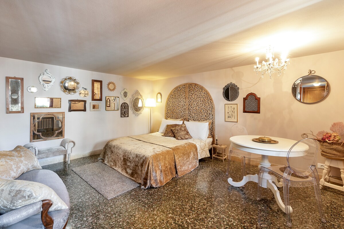APARTMENT IN LOVE FOR LOVERS. THE WATER DOOR IS A PEARL OF VENETIAN BEAUTY. THE INTERIORS ARE CREATED BY GLASS MASTERS, FINE MIRRORS AND VENETIAN FABRICS FREE WIFI, WELCOME KIT, WELCOME PROSECCO WINE WATERSDOOR IS LOCATED 5 MINUTES BETWEEN RIALTO AND 10 FROM SAN MARCO. I AM MARY SUPER HOST AND I WILL GUIDE YOU AT ALL TIMES DURING YOUR STAY IN VENICE. A BEDROOM A KITCHEN A LIVING ROOM A BATHROOM A SHOWER AND A WONDERFUL VIEW OF THE CANAL WITH THE WATER DOOR