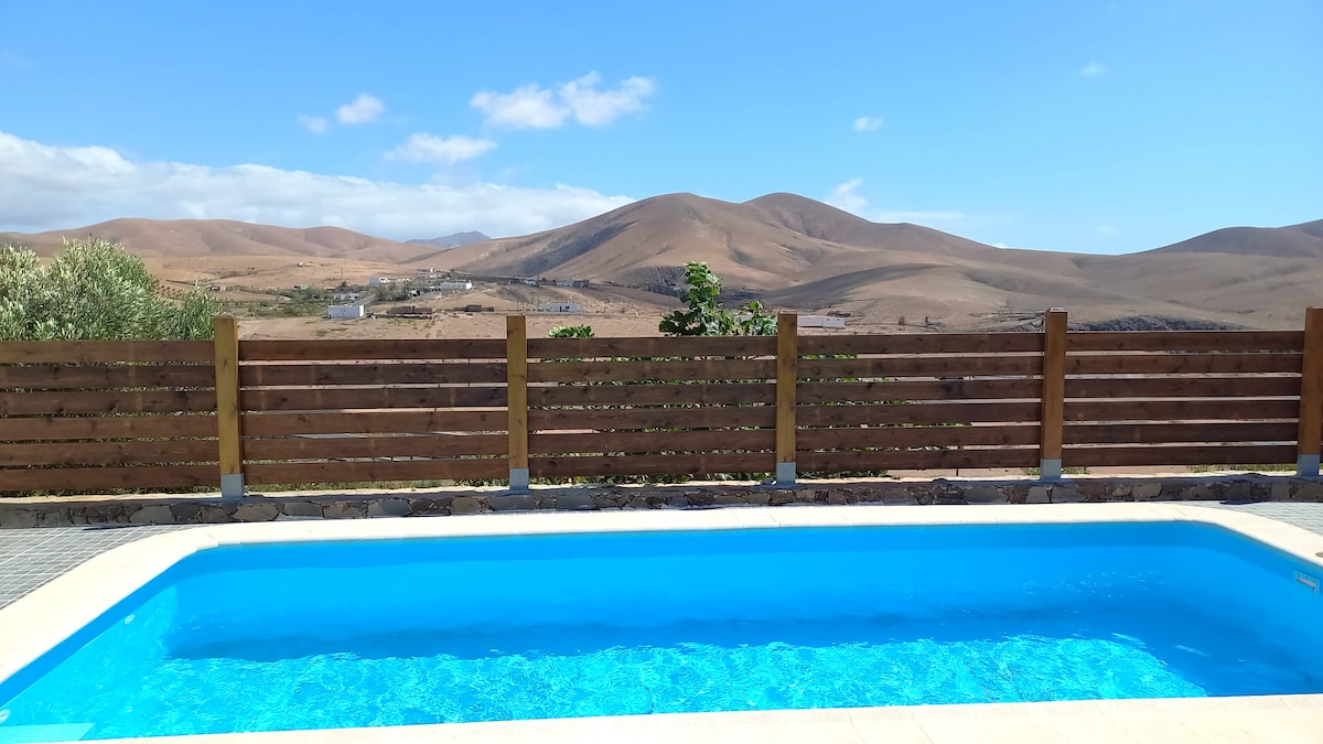 Charming house very well appointed, New AirCond. splendid ocean view and nature. NEW!! Solar water heater and drinking water purifier. Ideal for lovers and those who want to relax or be free. Fast & free wifi and TV Sat + Netflix Terrace protected of 28m2. Pretty Canarian garden. 5 minutes by car from most beautiful beaches of Las Dunas de Corralejo and 15 minutes from Corralejo 3 other apartments in available in Corralejo, ask me Paradise for surf, beach, hiking Possibility of extra nights