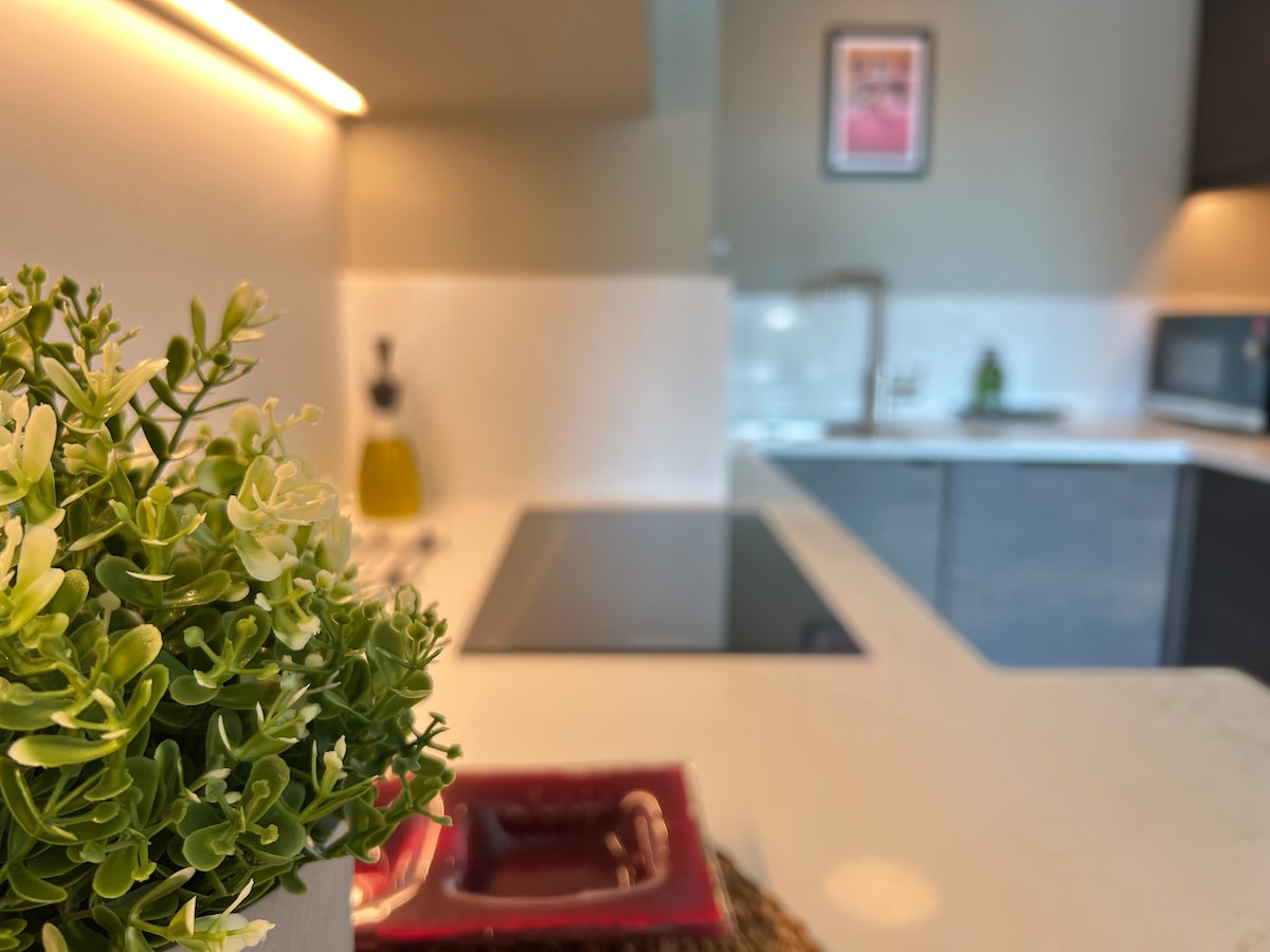 Welcome to our apartment, we are offering a open plan living space, with open kitchen but also offers glass wall panels to enclose and also an open plan bathroom, fully fitted with a Jacuzzi big enough for two, fireplace & TV, along with glass panel walls and doors & electric blinds for the essential privacy. Ambient lights, neutral colours, soft carpet, garden view. What more can you ask for? PLEASE NOTE: The Jacuzzi works from a 350L hot water tank system. Please contact us for more info