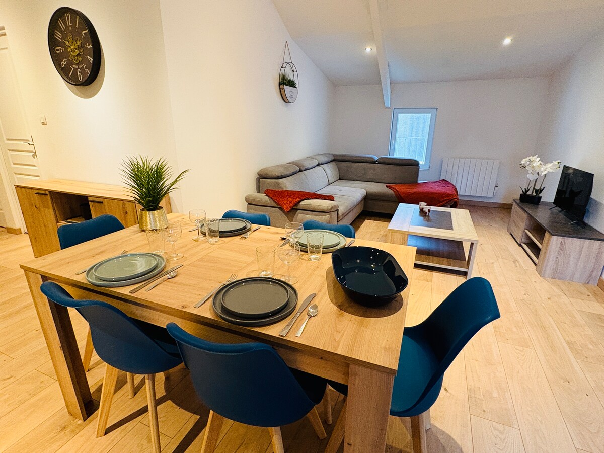 I offer you a cozy 35 m2 apartment, newly renovated and fully equipped, very quiet. It will seduce you with its practicality and location. A self check-in/out service will allow you to check in independently. Located 2 minutes' walk to the city center and all amenities, as well as 10 minutes to the SNCF train station. Free parking is available near the accommodation