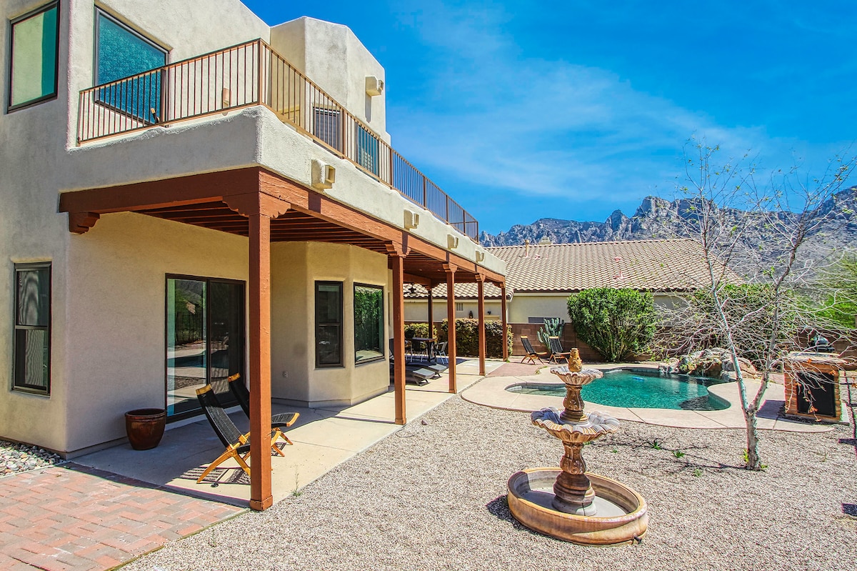 **Free pool & spa heating included in all stays!** Welcome to Hacienda Riad: a unique fusion of Sonoran and Moroccan design. 16 mins to University of Arizona 25 mins to Downtown Tucson 27-37 mins to Saguaro National Park (West/East) The house is located in a quiet neighborhood in the foothills of the Catalina Mountains surrounded by native desert landscape. The home is perfect for relaxation by the private pool and has numerous luxurious touches while being comfortable, unique & casual.