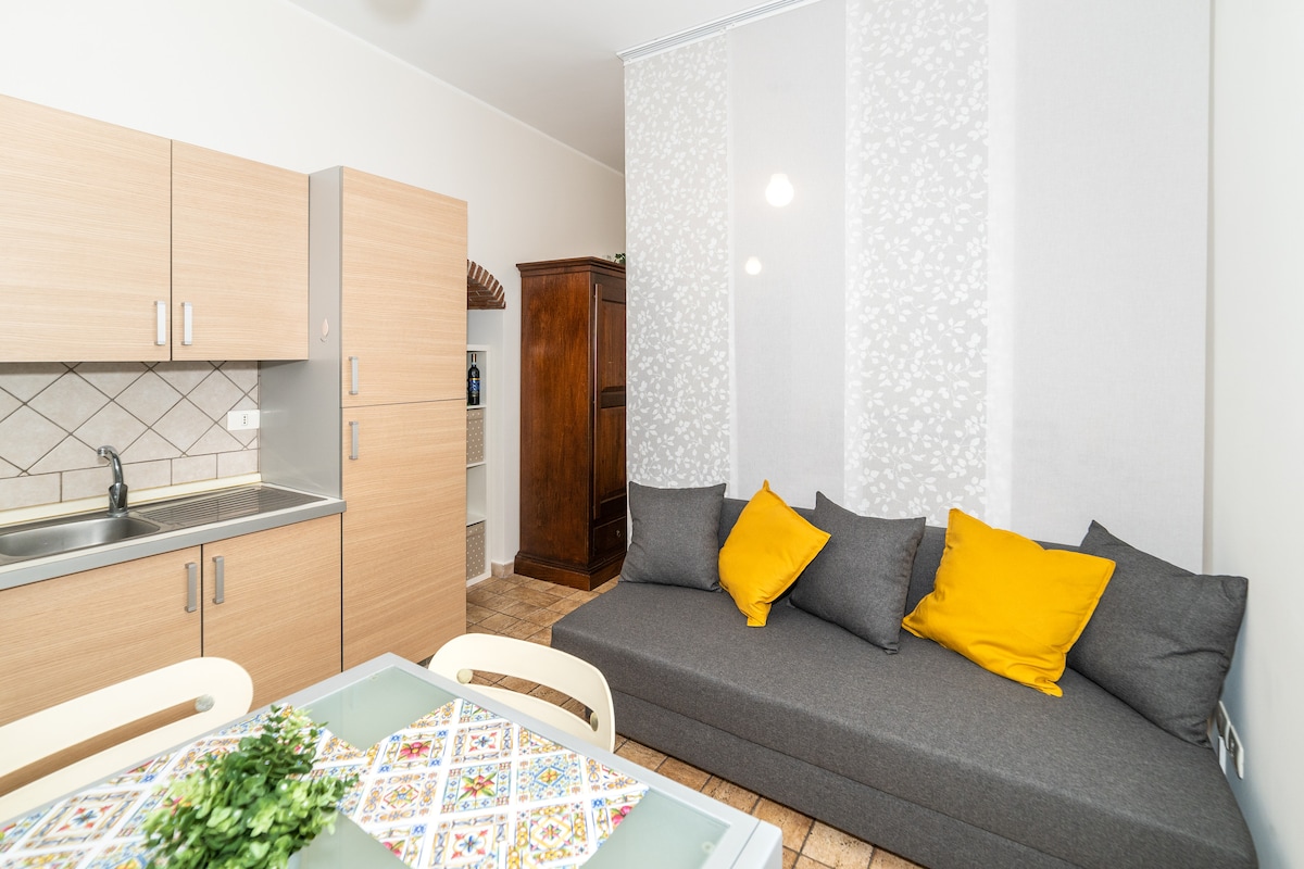 Tiny and elegant apartment in the hearth of the Catania city centre. Recently renovated, it combines traditions and modernity: new-fashioned furniture beside a bedroom with Sicilian earthenware tiles and vaulted ceilings dating from the late 1800s. It is near the main places of interest: the Roman Theatre (120m), Ursino Medieval Castle (400m), Sant'Agata Cathedral (450m) in Dome Square, Università Square (550m), Roman Amphitheater (800m), Bellini Theatre (900m).