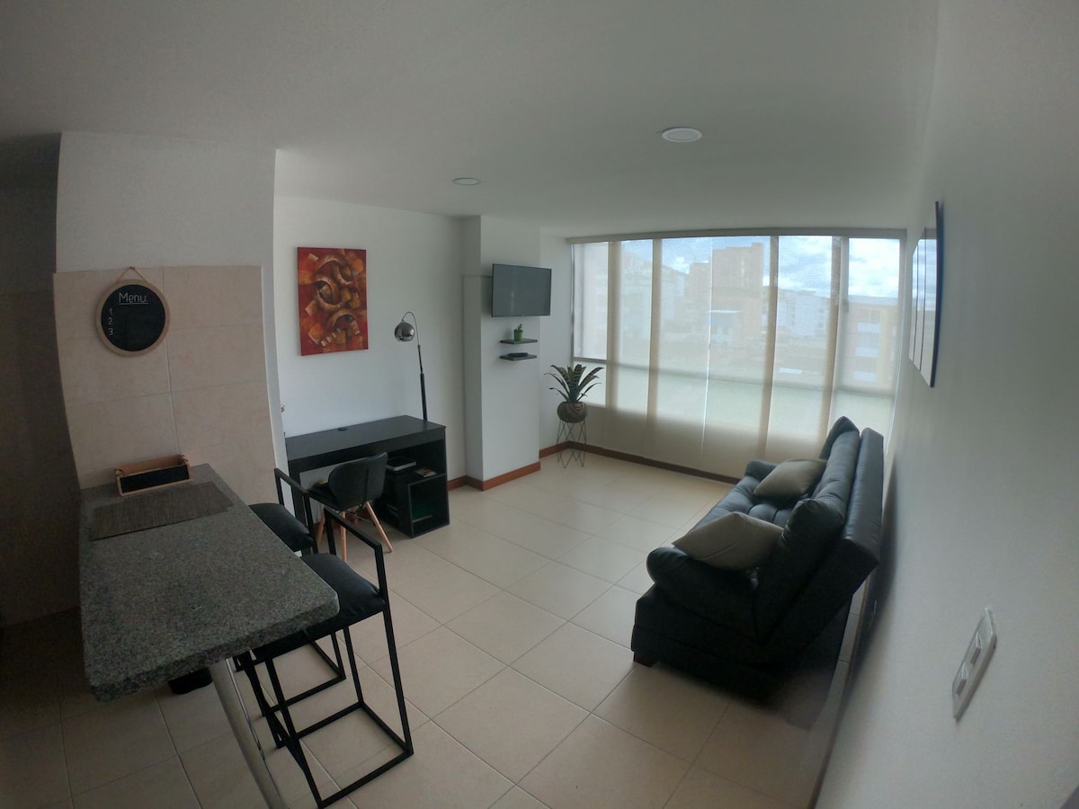 Enjoy a comfortable and quiet stay in this modern studio apartment designed for travel, couples or small groups. It has a comfortable bed, an equipped kitchenette, a private bathroom and a warm decoration that invites you to rest. Located in a safe residential area, with easy access to downtown Pasto, shopping and transportation. Perfect for rest or work trips, with everything you need to feel at home.