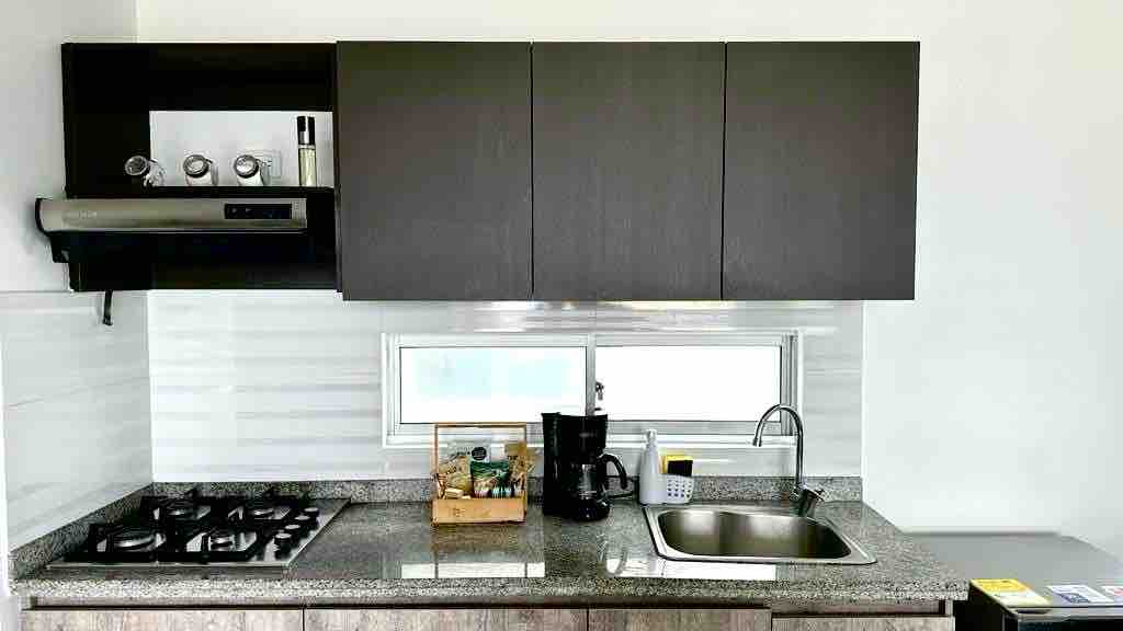 Enjoy branding a modern and fully equipped loft for your convenience. Air fryer, blender, refrigerator and everything you need. Relax with 4K TV, fast WiFi, and a comfortable workspace. Bathroom with impeccable shower, laundry and clothes rack. Everything is of excellent quality: modern blinds, spacious closet and perfect finishes. Ideal for short and long stays with style, comfort and a central location. GYM dotado and coworking space sixth floor.
