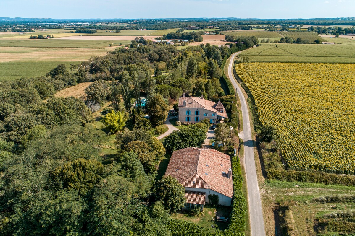 Welcome to Villa Blanche des Pins, 150 m² renovated, nestled in a wooded park. 10 minutes from Marmande, enjoy a peaceful setting between nature, space and comfort. 🏡 accommodation 4 bedrooms, 1 room upstairs, 1 bathroom, up to 10 people. Wi-Fi 🌳 outdoor Private pool Terrace, deckchairs, garden furniture Outdoor games Enclosed XXL garden, barbecue 🎯 Ideal for families, groups of friends, teleworkers Pets: ok 📍Nearby Canal du Midi, walks, lake